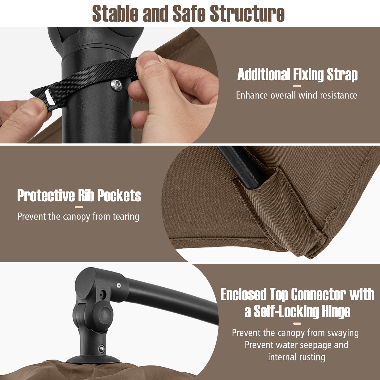 10' Offset Hanging Umbrella with Base Patio Cantilever Umbrella 360 Rotation