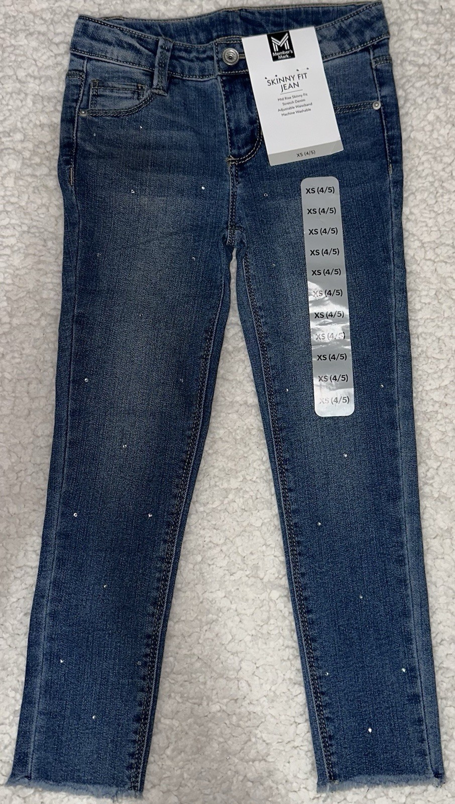 как выглядит Members Mark Girls Skinny Jeans XS 4/5 Blue Embellished Denim фото