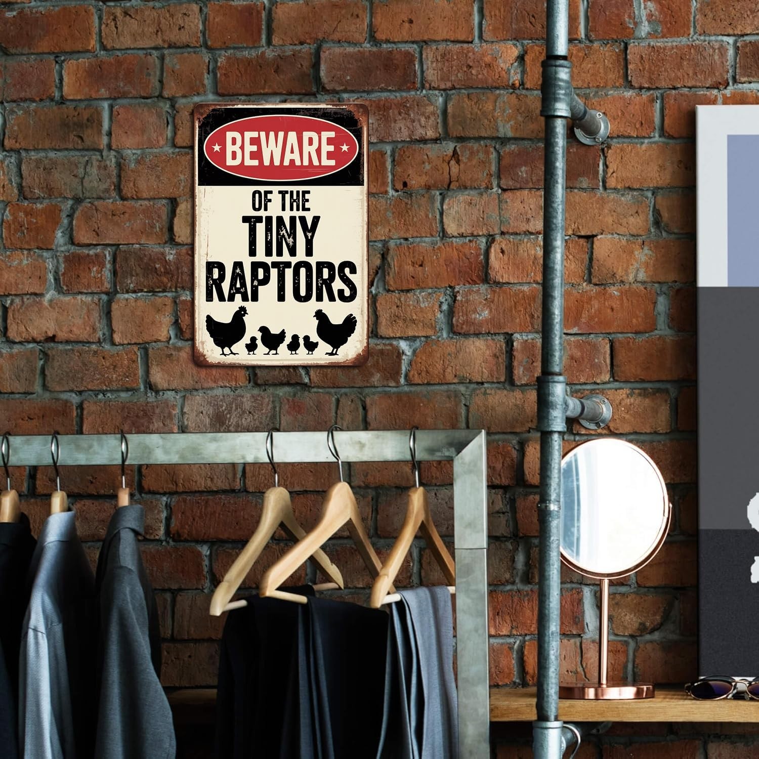 как выглядит Beware Tiny Raptors Chicken Coop Tin Metal Signs Home D cor 8x12 фото