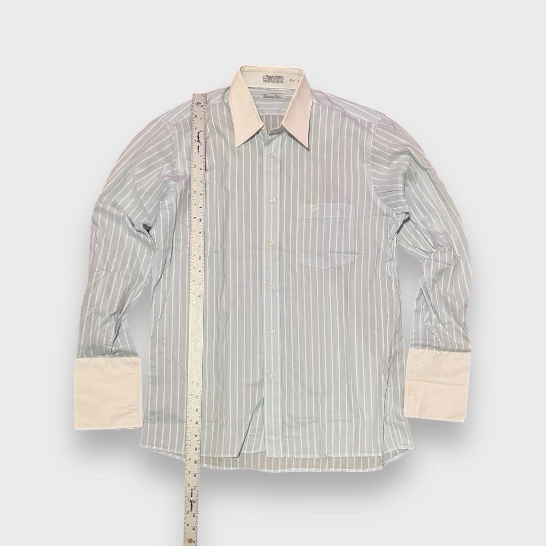 как выглядит Christian Dior Mens Striped Dress Shirt Light Blue White Point Collar Vintage фото