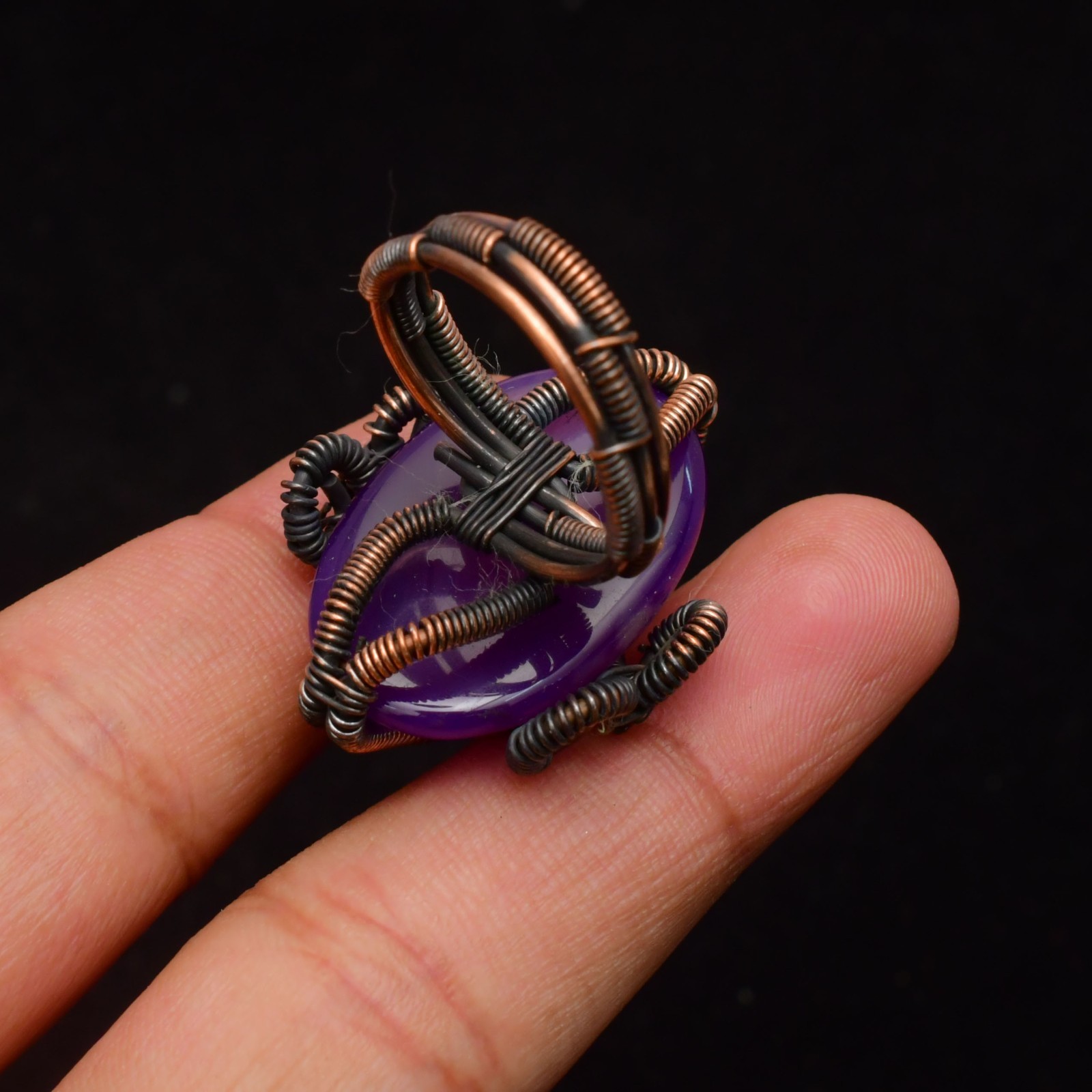Amethyst Gemstone Copper Wire Wrapped Handmade Jewelry Ring Size 9