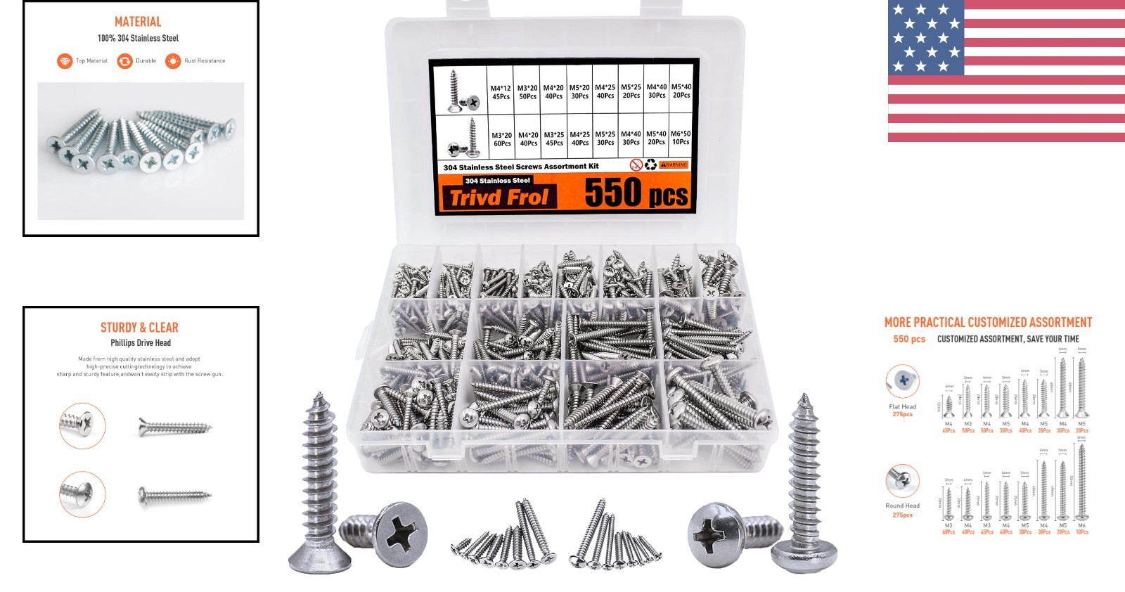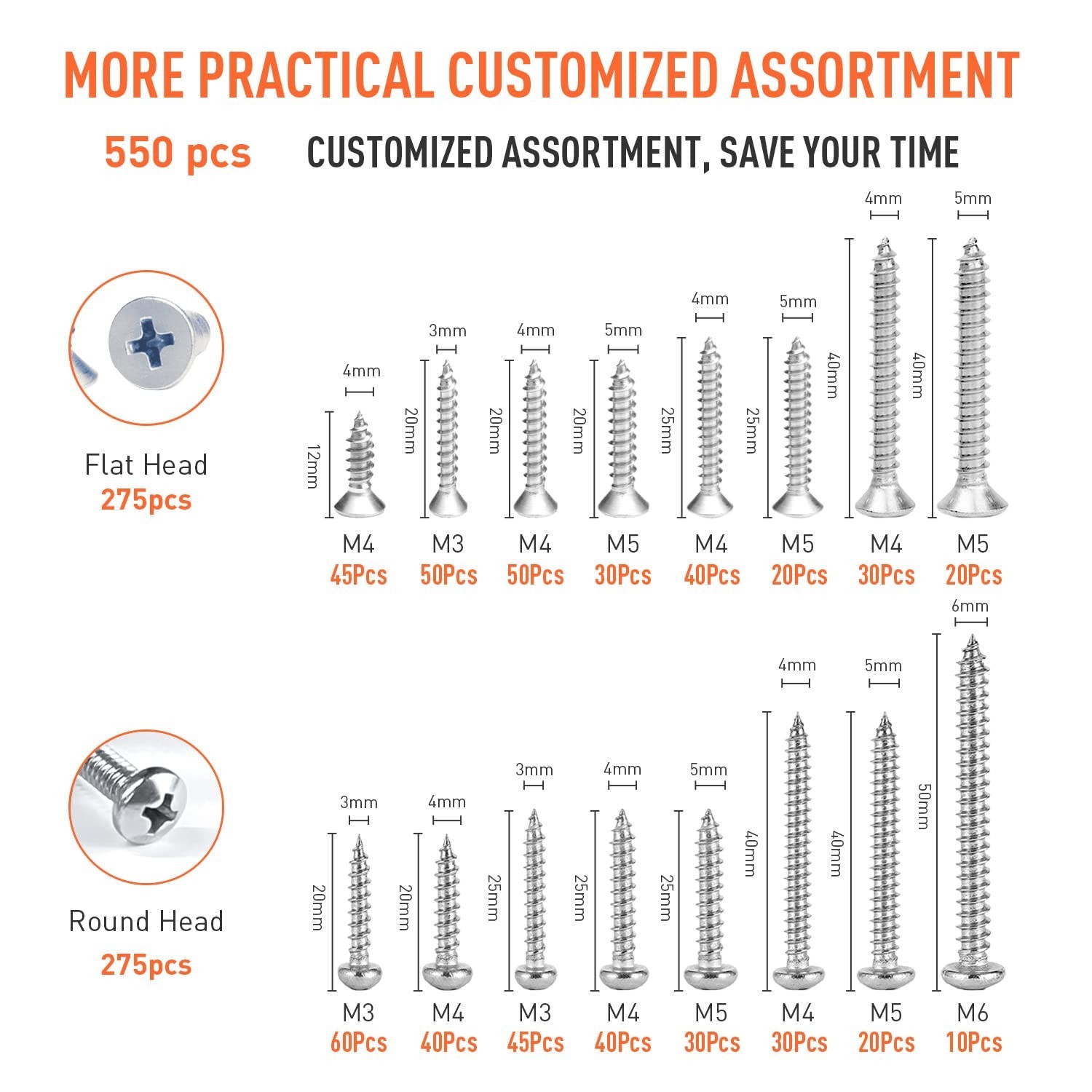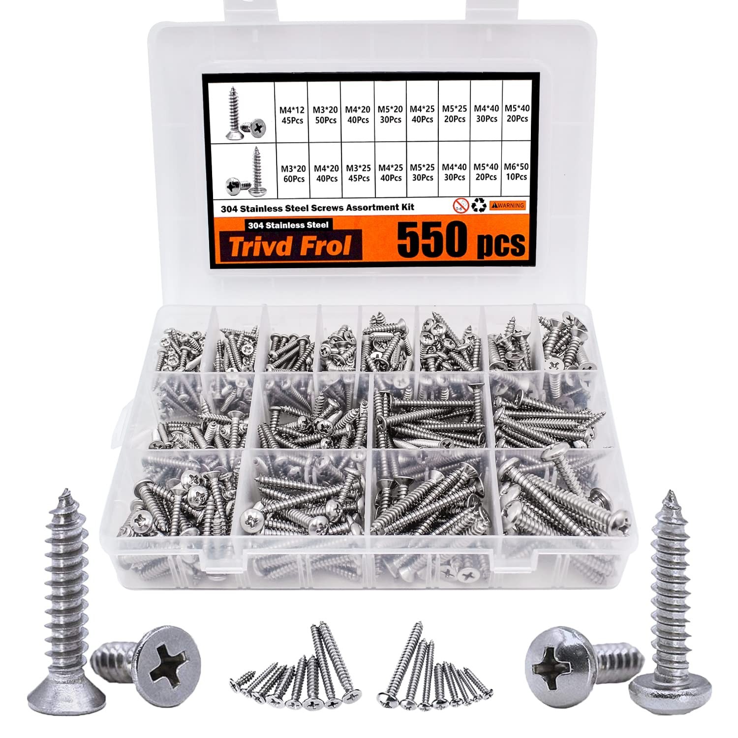 • Comprehensive 550-Pc Self Tapping Screws Set - Perfect for Home Improvements