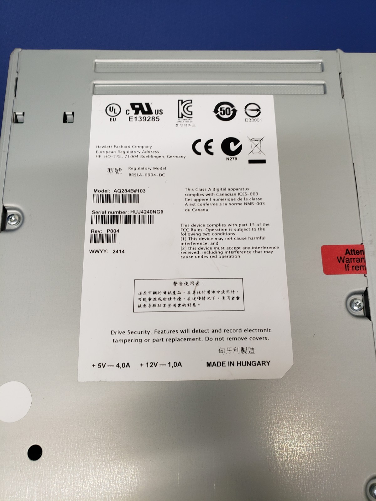 как выглядит HP BL540B 695111-001 ULTRIUM LTO-5 HH SAS TAPE DRIVE AQ284B 103 фото