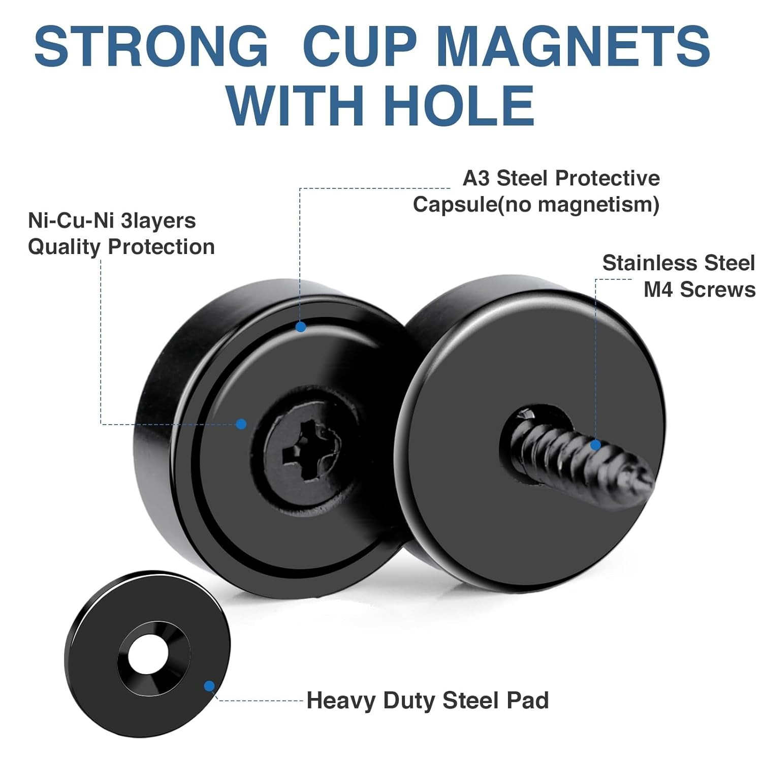 • Strong Magnets Heavy Duty 150LB Cup Magnets with Countersunk - 10 Pac