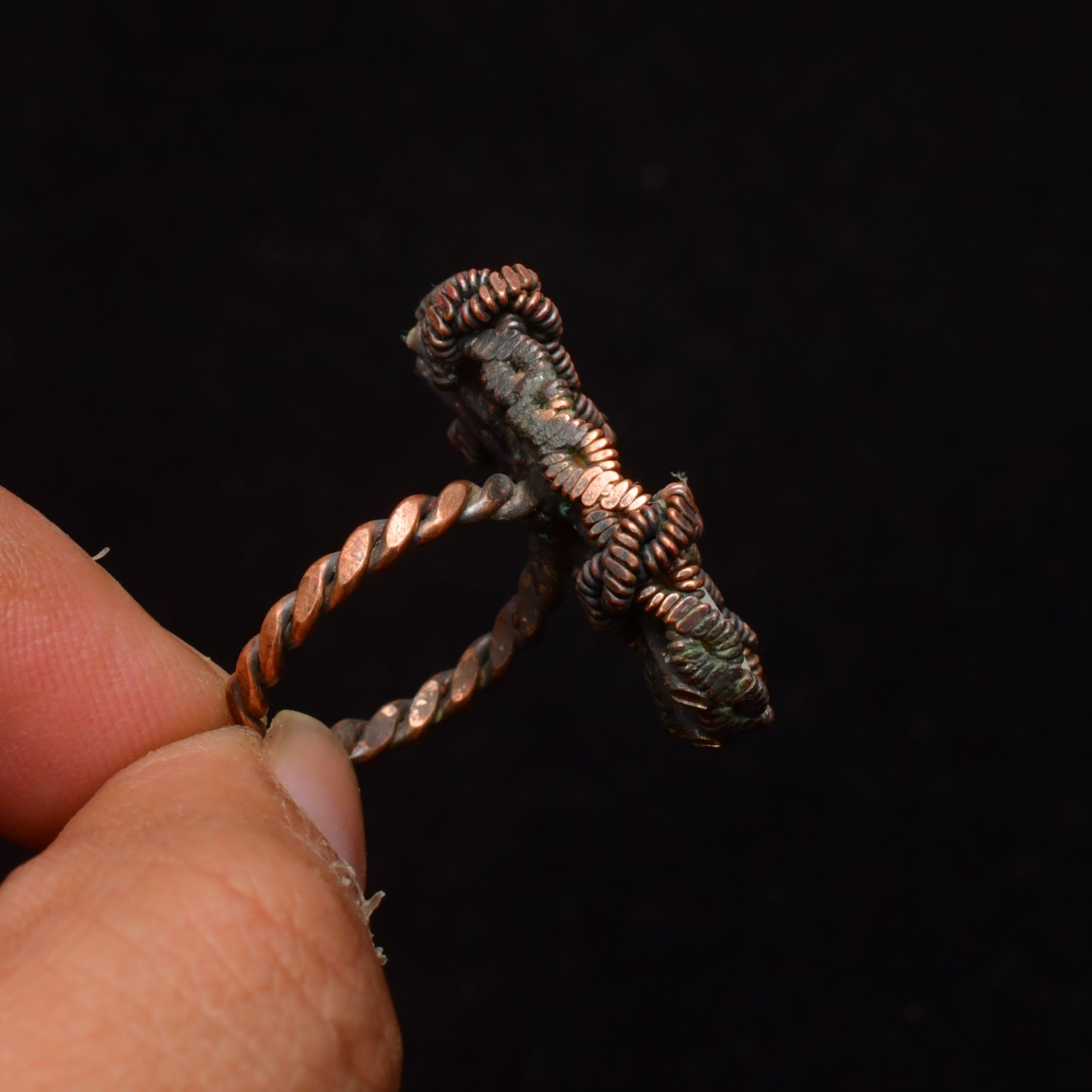 Mother of Pearl Gemstone Copper Wire Wrapped Handmade Jewelry Ring Size 6.5
