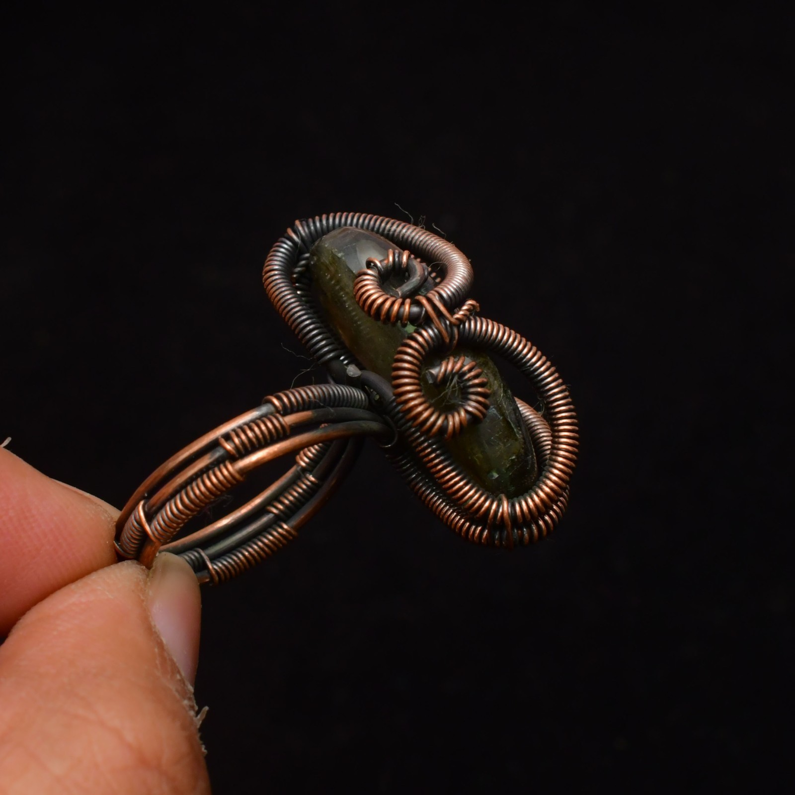 Labradorite Gemstone Copper Wire Wrapped Handmade Jewelry Ring Size 10
