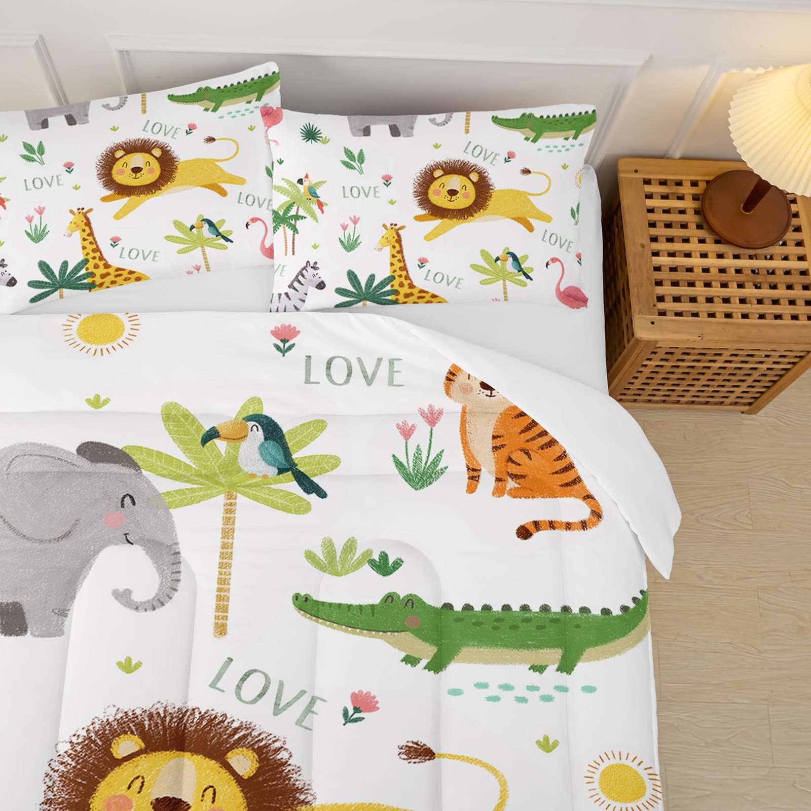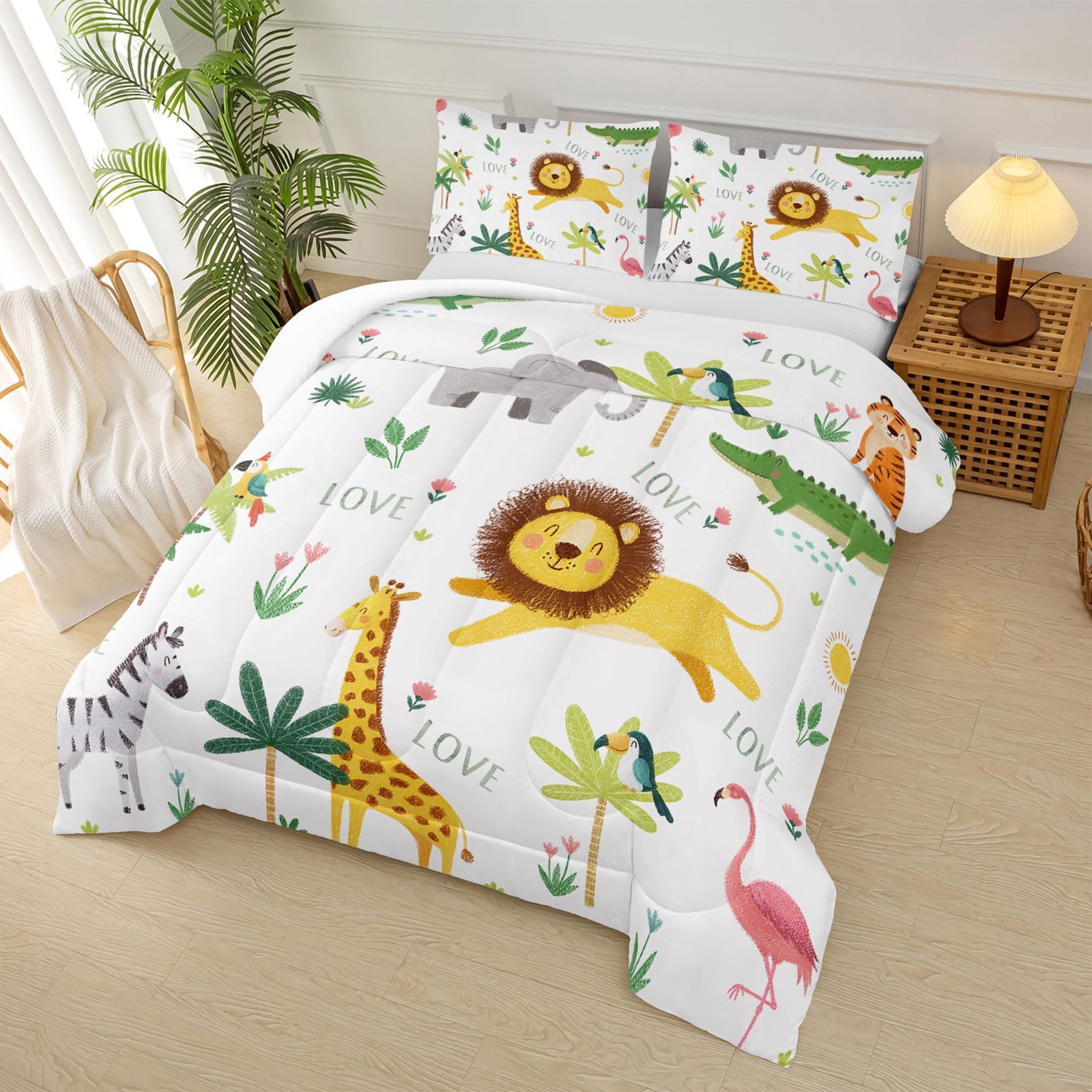 Girls Animal Comforter Sets Twin Size Bed,Boys Wildlife Comforter Set,Jungle ...