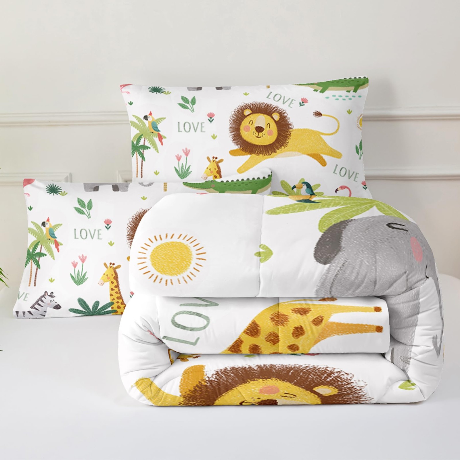 как выглядит Girls Animal Comforter Sets Twin Size Bed,Boys Wildlife Comforter Set,Jungle ... фото