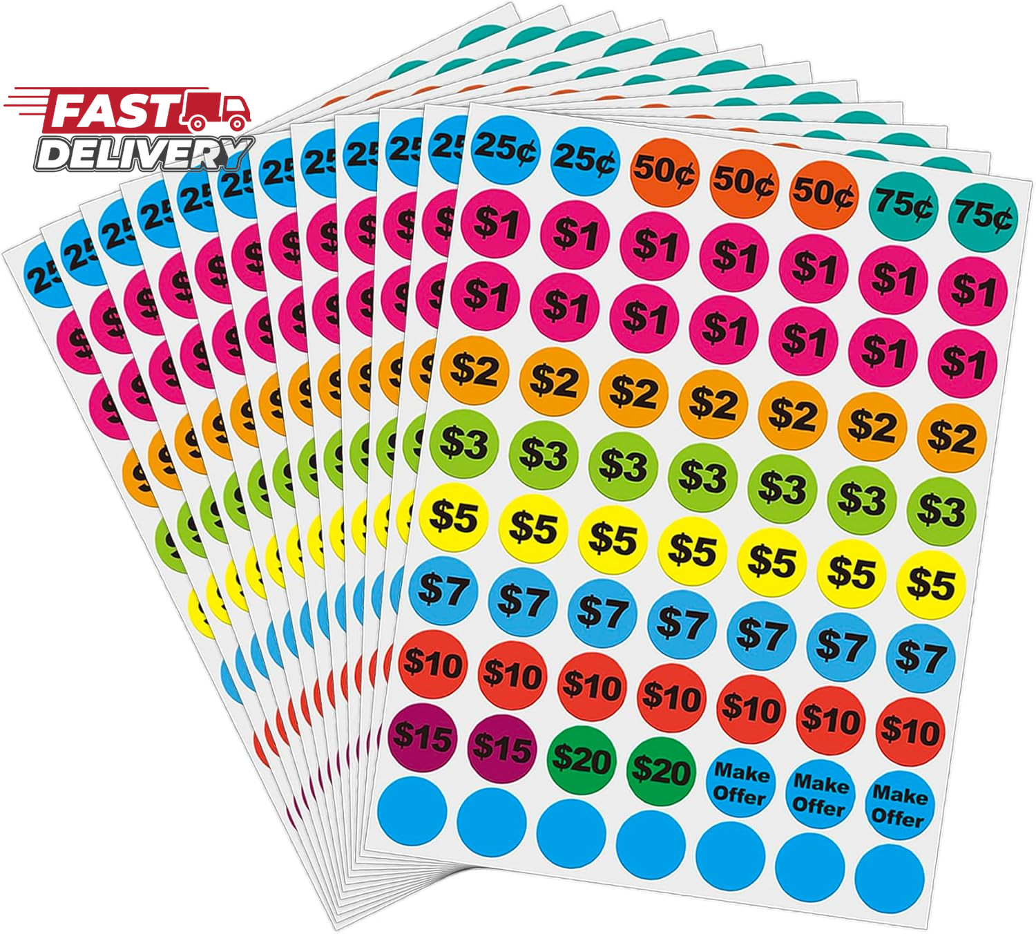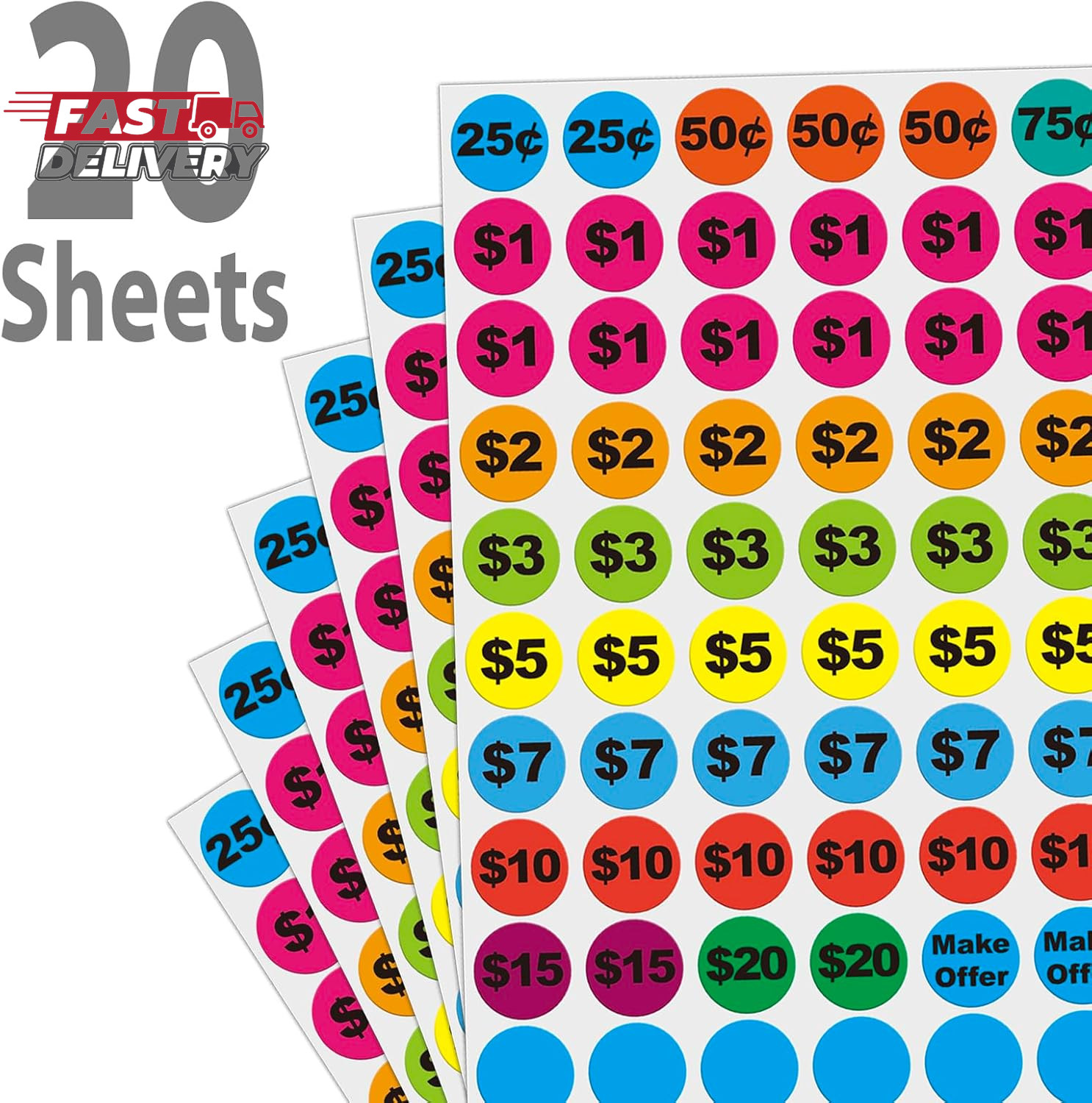 Removable Garage Sale Stickers, 1400 Pcs Yard Sale Price Stickers, 3/4 round Pr