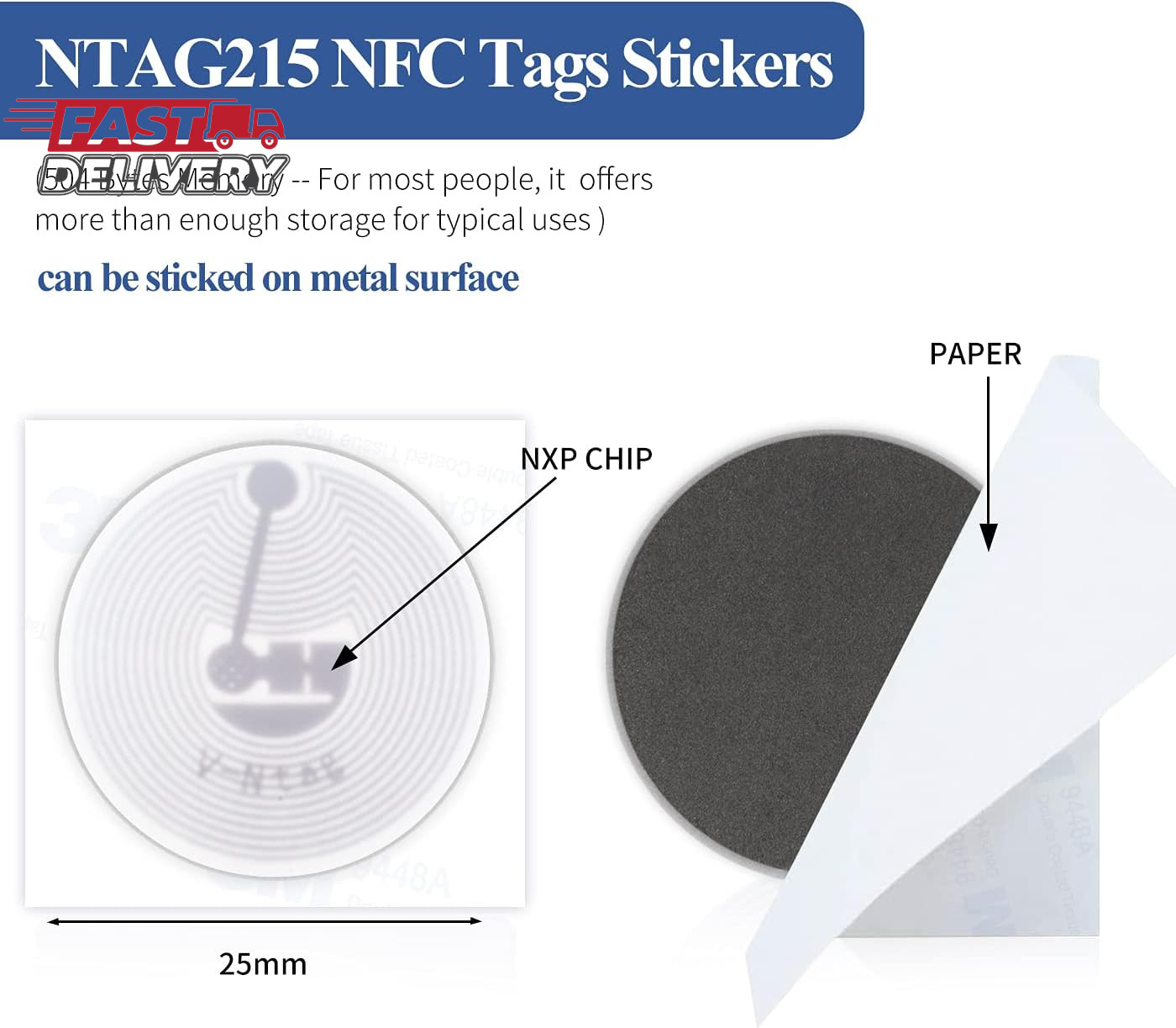 10Pcs NFC Tags Stickers Work on Metal NFC Anti-Metal Stickers NTAG215 NFC Tags