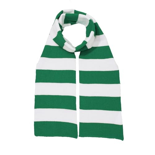 Men's Winter Scarf Knit Striped Scarf for Fall and One Size Green White