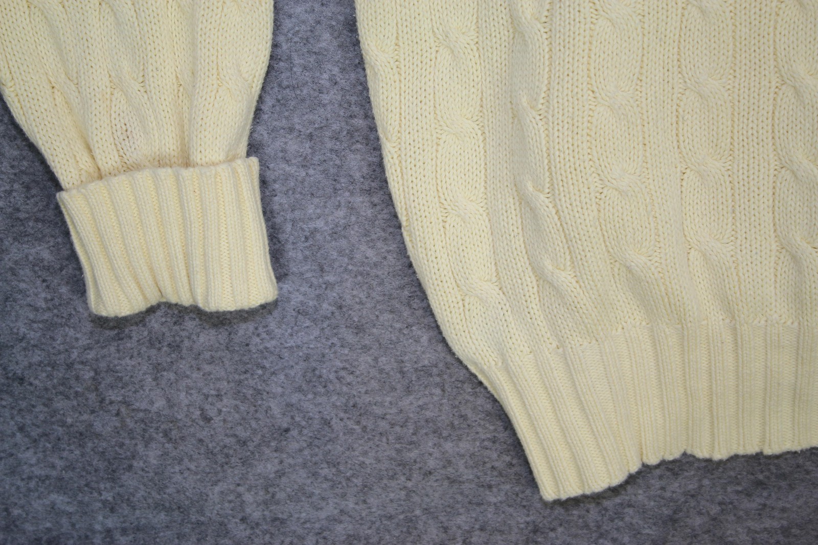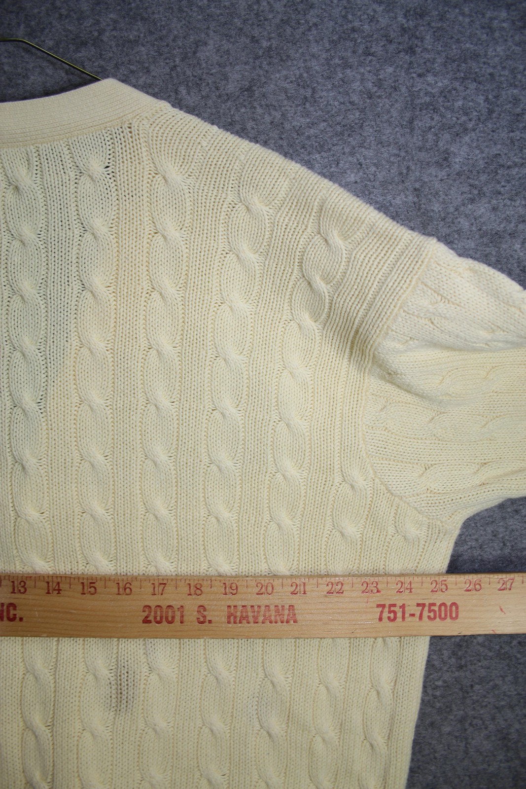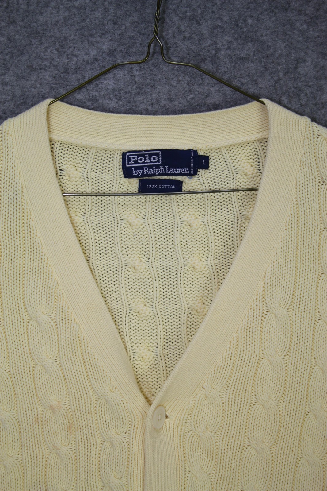 как выглядит VTG Polo Ralph Lauren Cardigan Sweater Men L Yellow Cable Knit Pockets Hong Kong фото