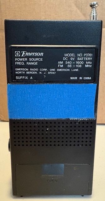 Vintage Emerson P3761 Hand Held AM/FM Radio 9V Battery - TESTED WORKS