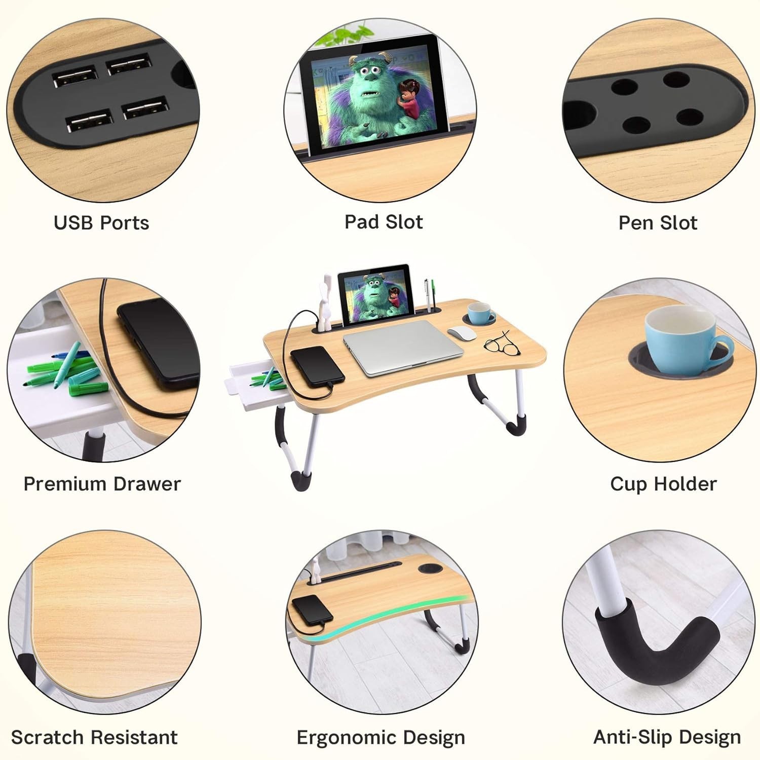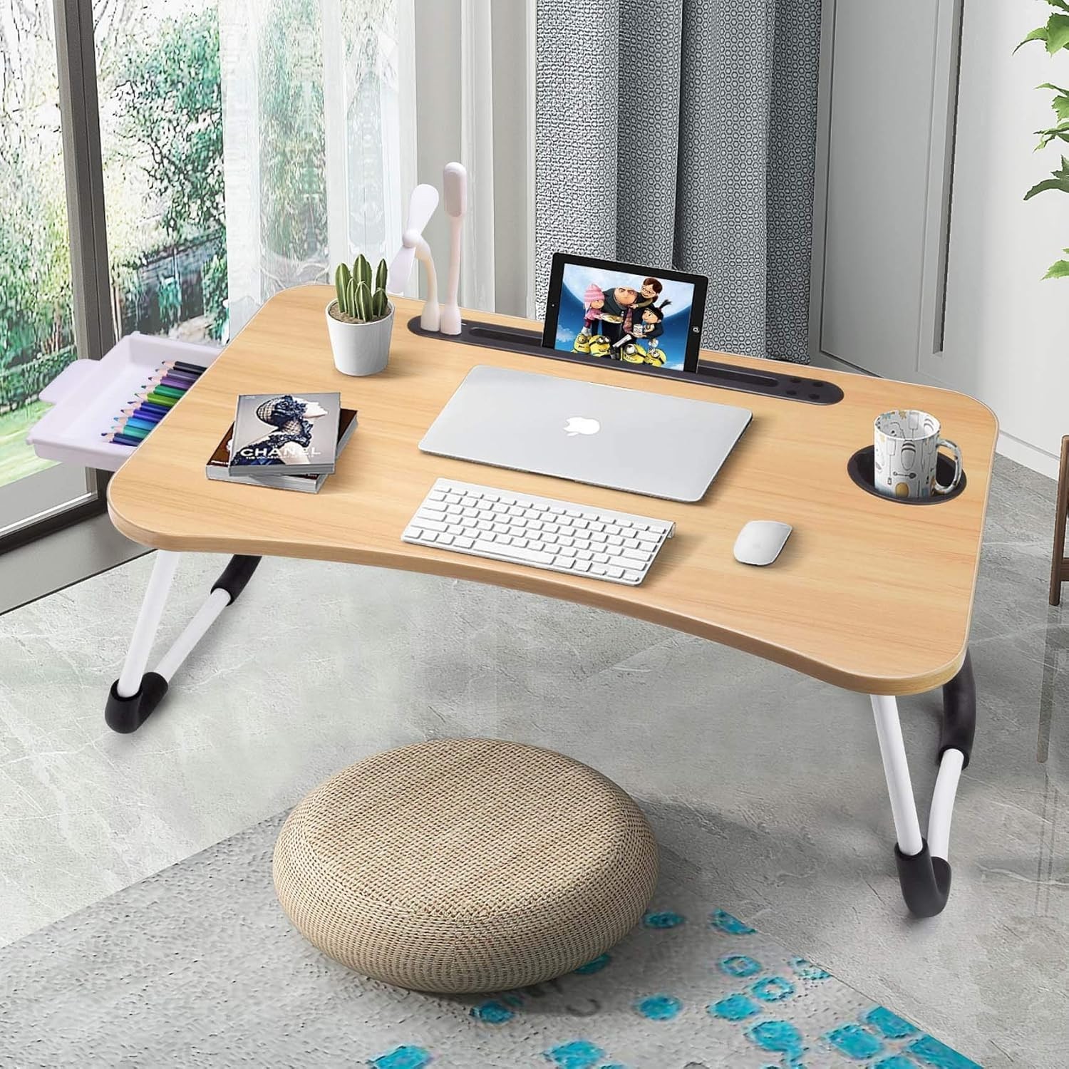 Slendor Lap Desk with Tablet Slot, Foldable Laptop Table with Storage Drawer ...