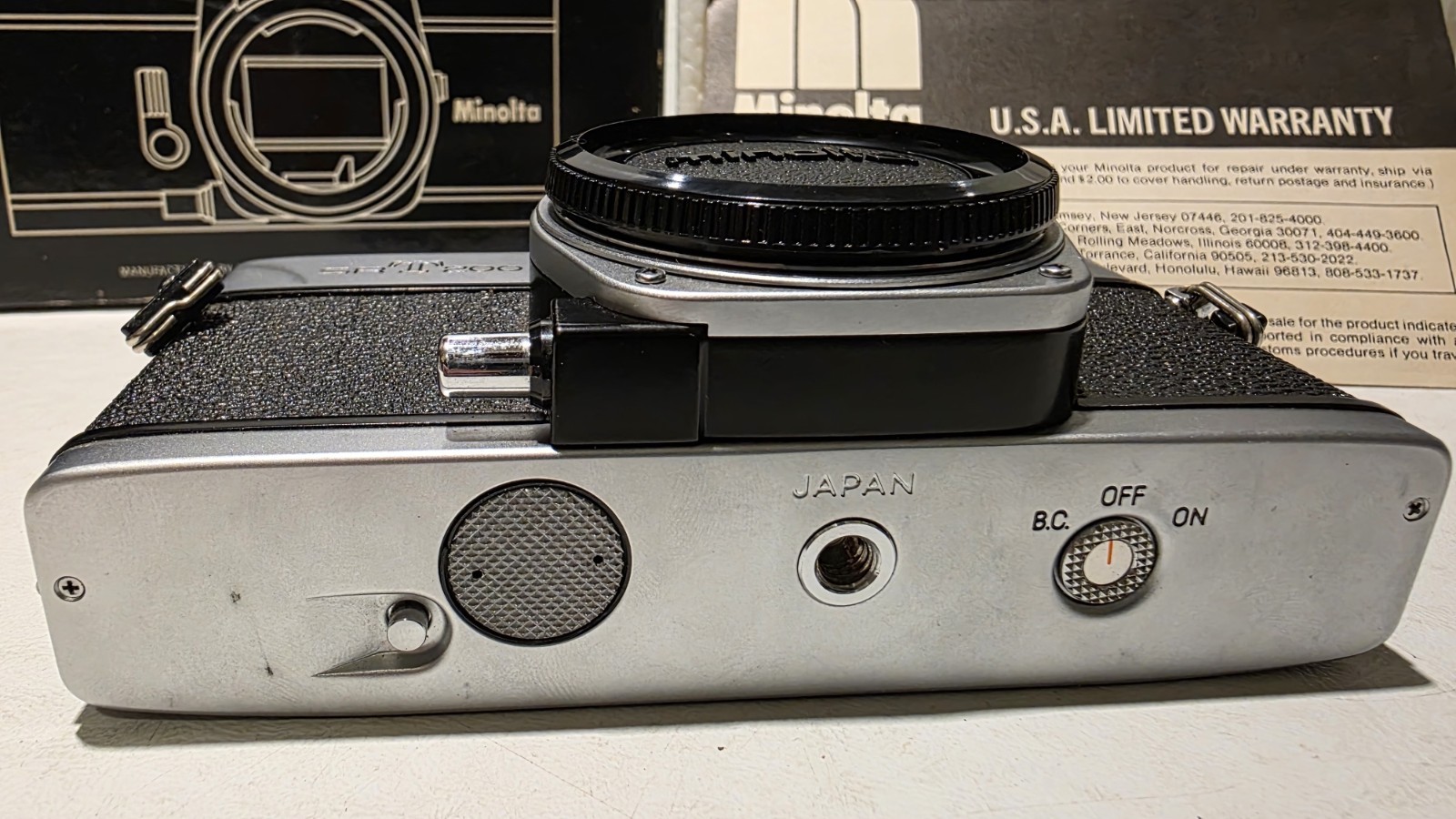 как выглядит Minolta SRT201 35mm SLR Film Camera Body with Body Cap in Original Box silver фото