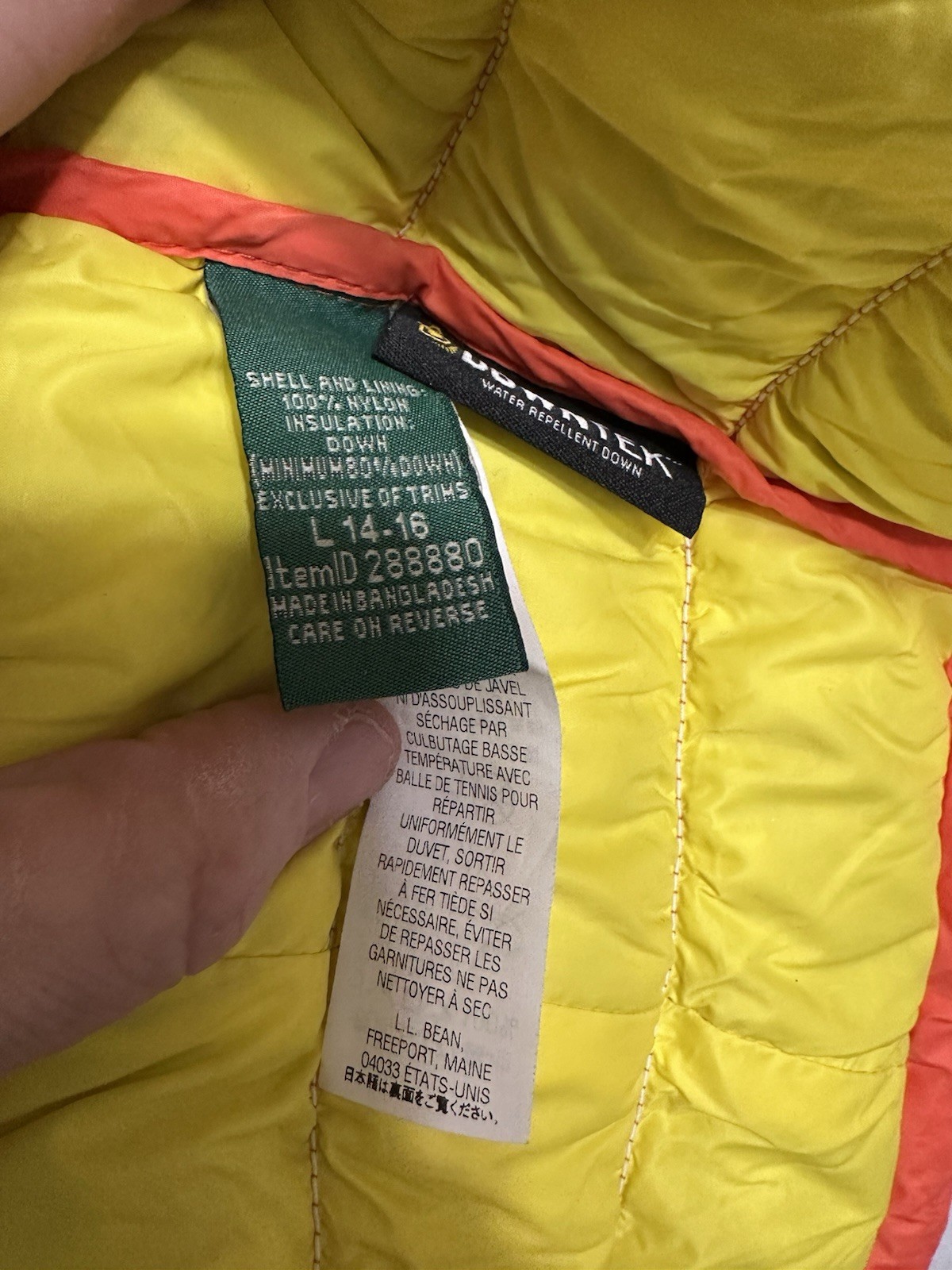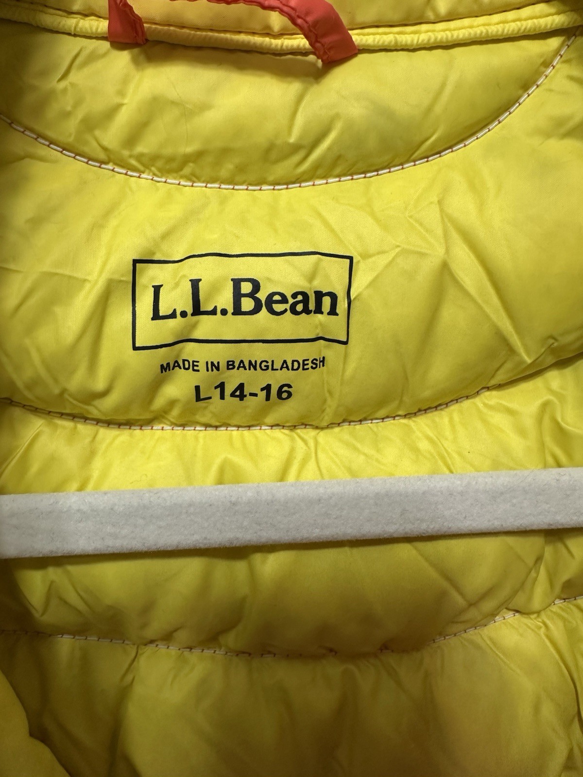 как выглядит LL Bean Oragnge/Yellow Downtek Vest Girls/Unisex Size 14/16 FULL ZIP фото