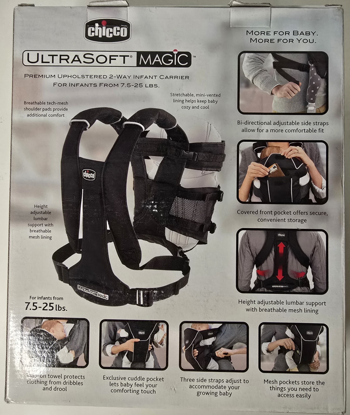 Chicco UltraSoft Magic Infant Carrier - 2-Way Baby Carrier 7.5-25 lbs Black