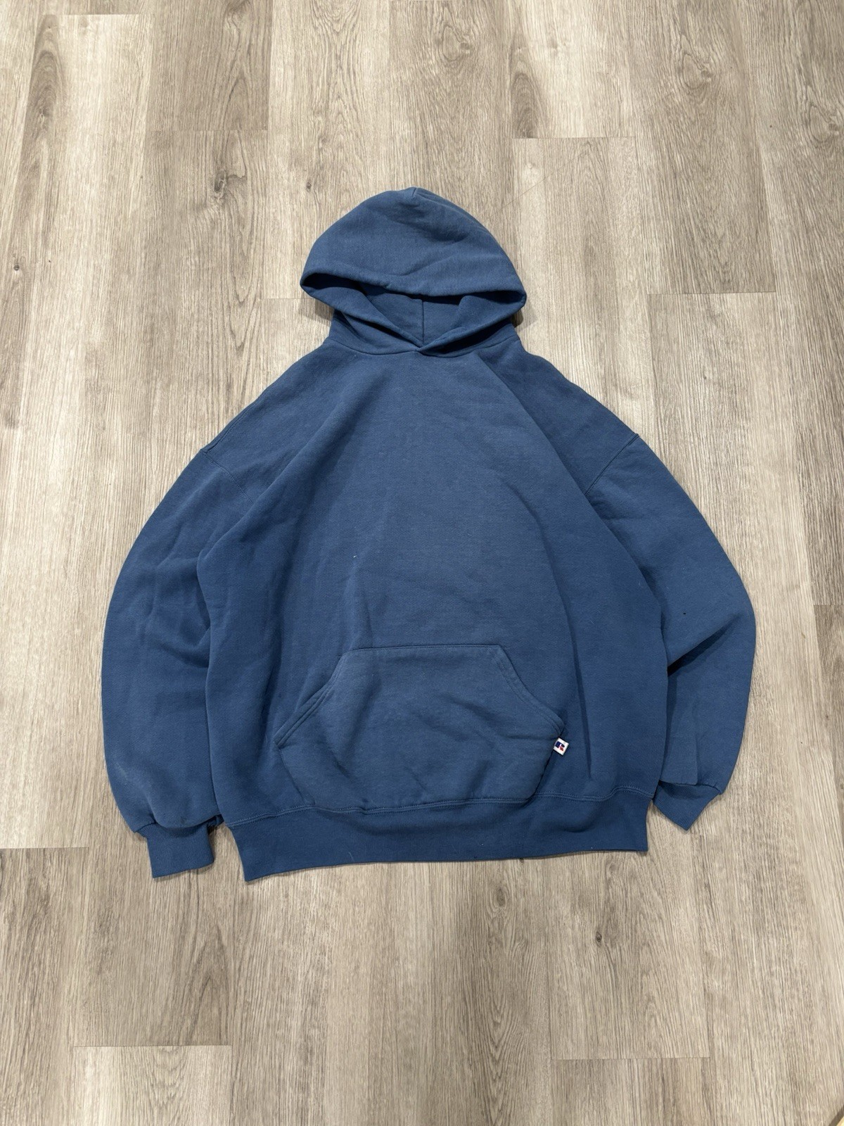 Vintage 90s Faded Blue Russell Athletic Hoodie Size XXL Made In USA Blank Boxy