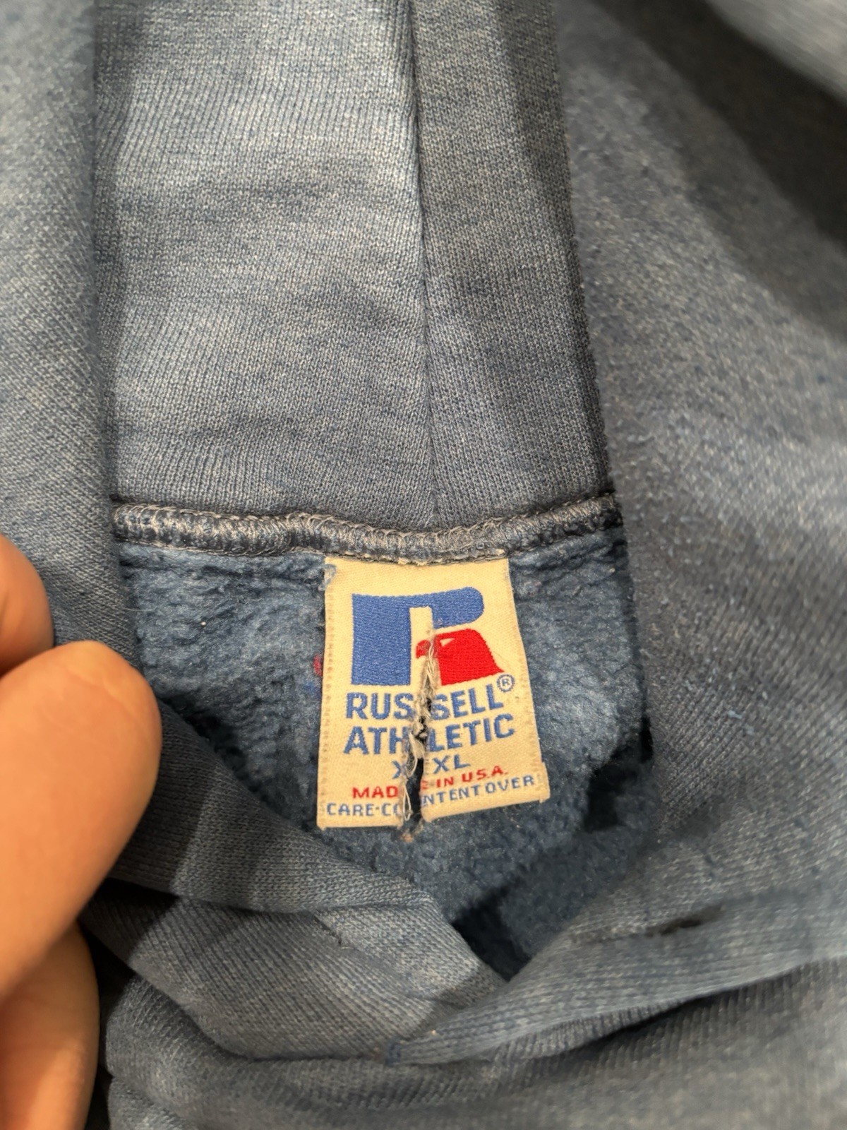 как выглядит Vintage 90s Faded Blue Russell Athletic Hoodie Size XXL Made In USA Blank Boxy фото