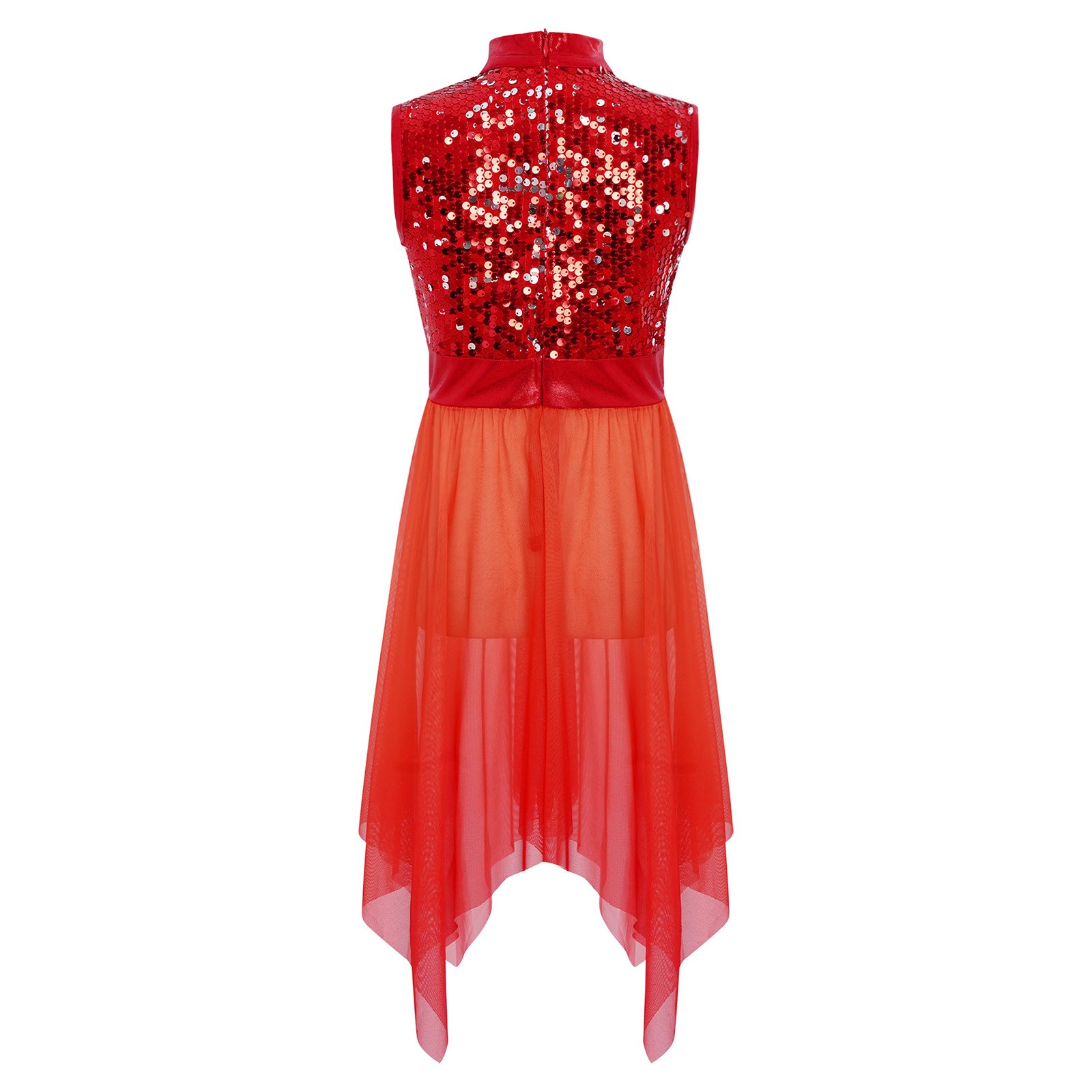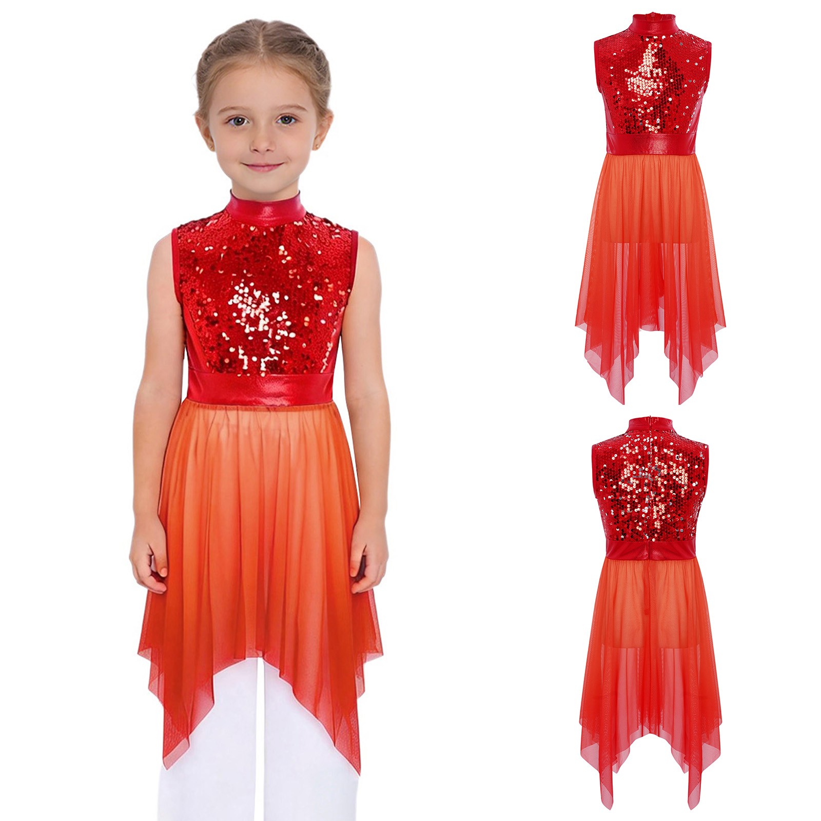 Girls Sequin Lyrical Praise Dance Dress Worship Liturgical Tunic Irregular Hem