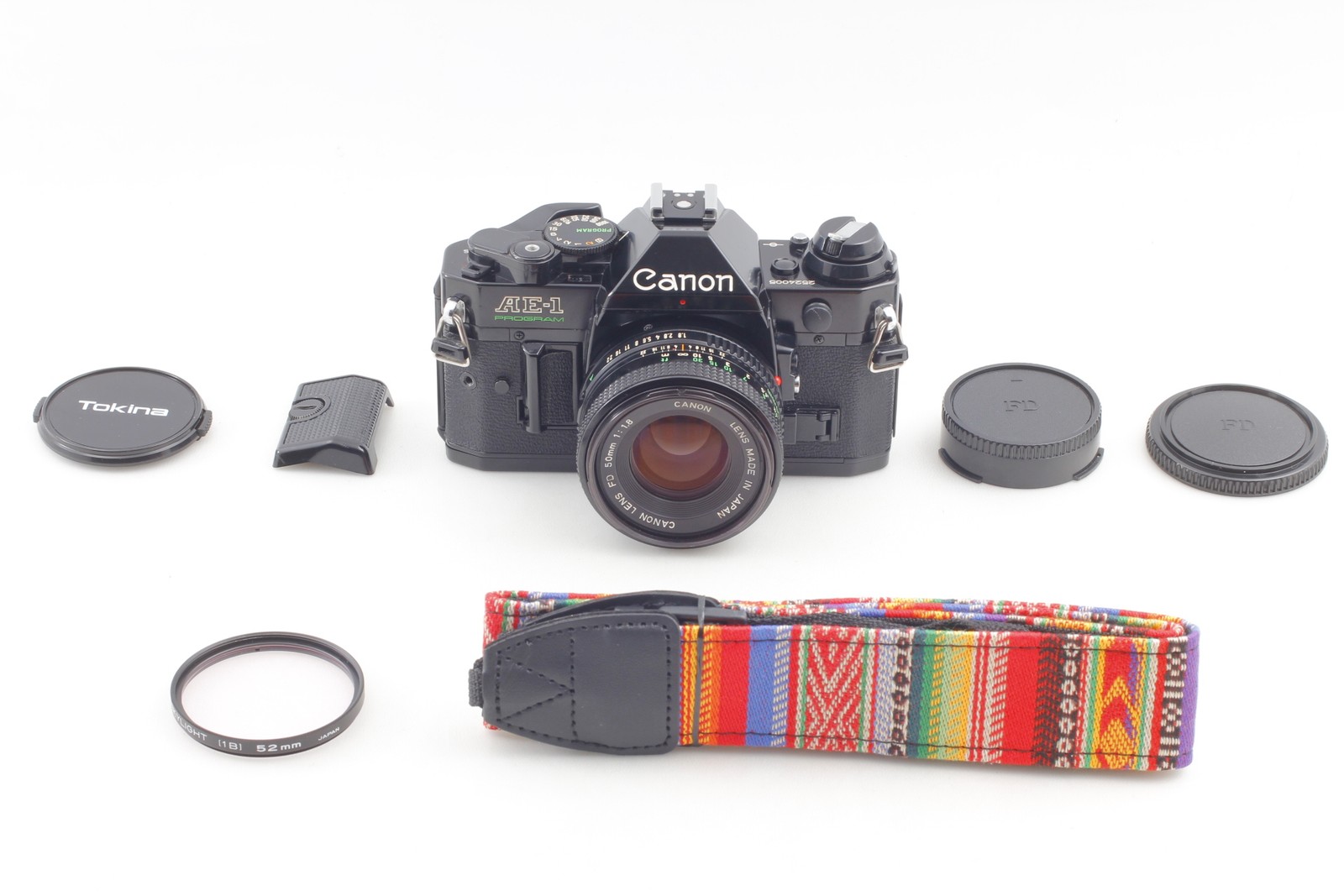 All OK Near MINT Canon AE-1 Program 35mm Film Camera NFD 50mm f1.8 Lens JAPAN