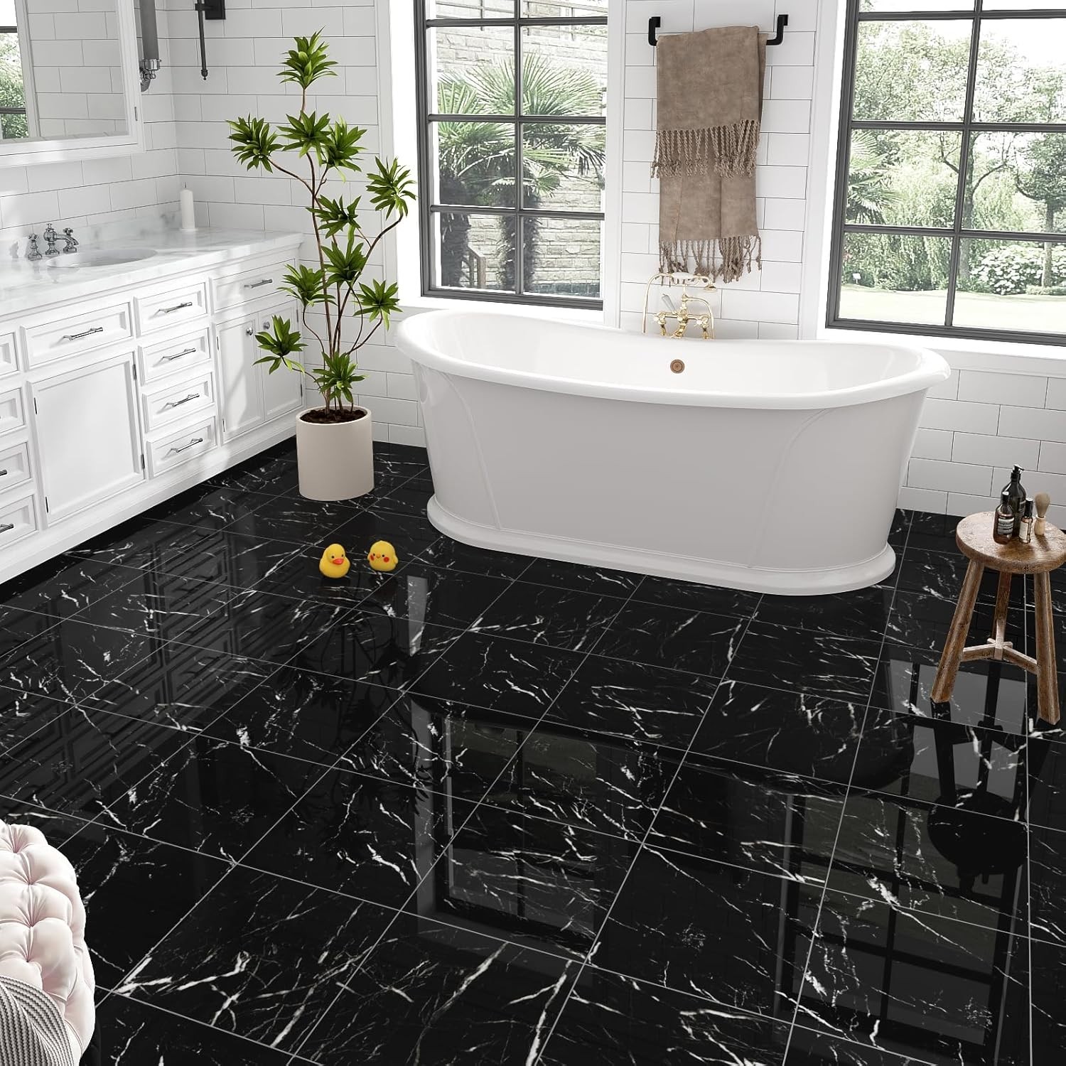 Pack Peel and Stick Floor Tiles Vinyl Floor 12 x 12 inch Self Adhesive Waterp...