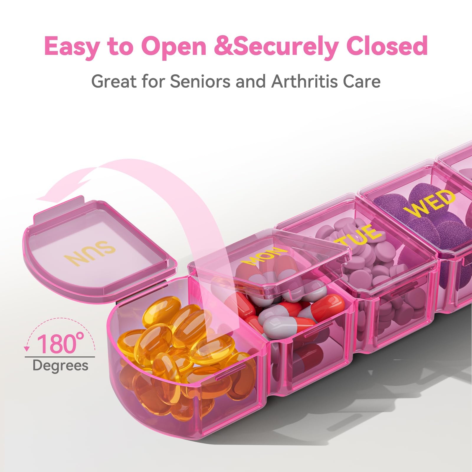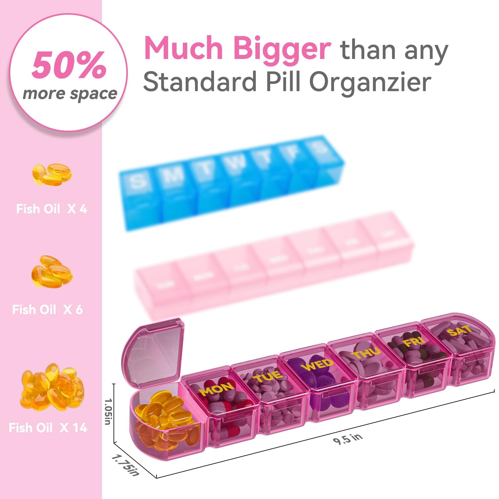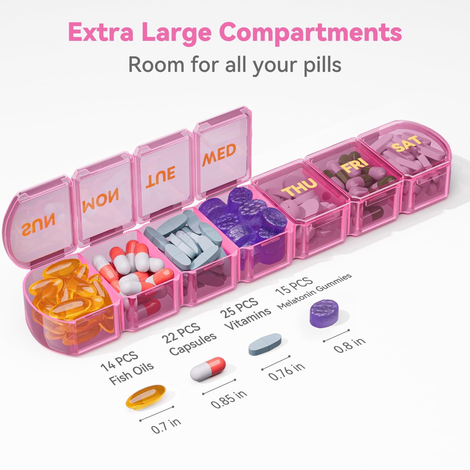 Large Pill Organizer Weekly - SHIJOINYU 7 Day Box with Extra Large, Pink