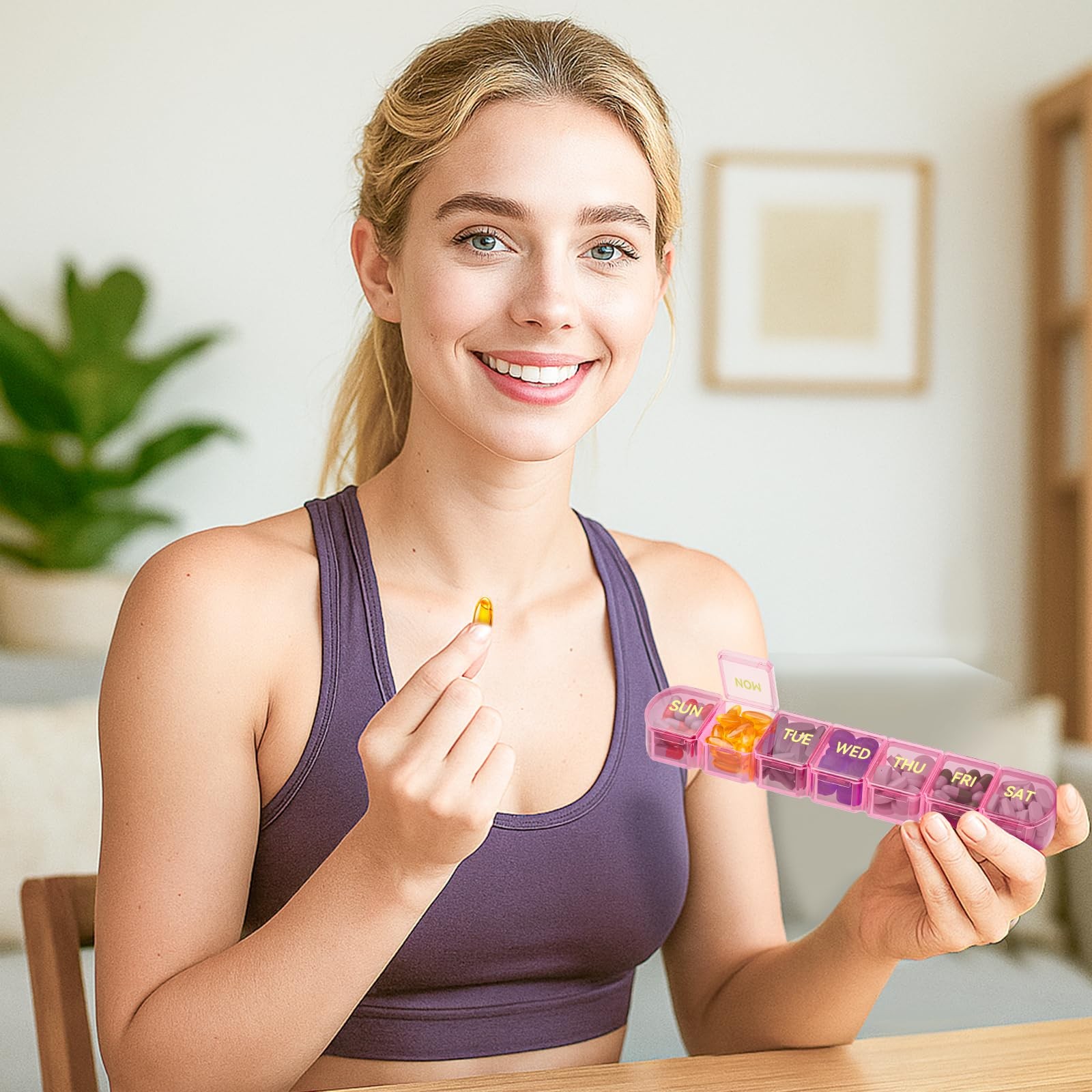 как выглядит Large Pill Organizer Weekly - SHIJOINYU 7 Day Box with Extra Large, Pink фото