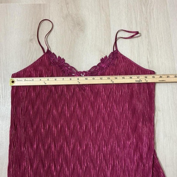как выглядит Vintage Dentelle Womens Large Burgundy Lace Trim Pleated Slip Dress Nightgown фото