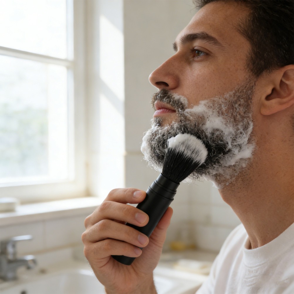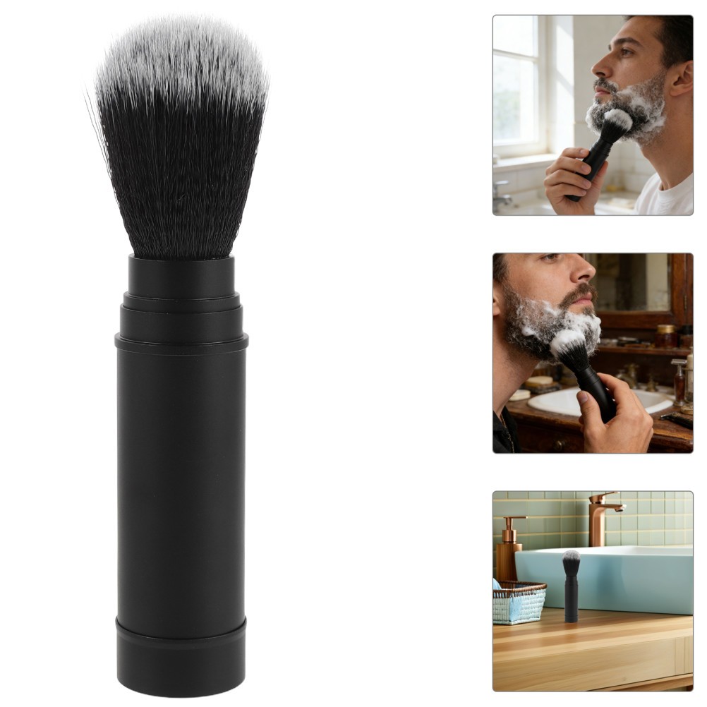 Men Shaving Cream Brush: Portable Synthetic Bristle Travel Lather Shave Brush