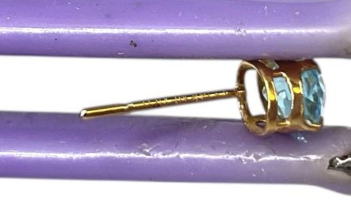 как выглядит 14kt Yellow Gold Blue Oval Topaz Post Earrings фото