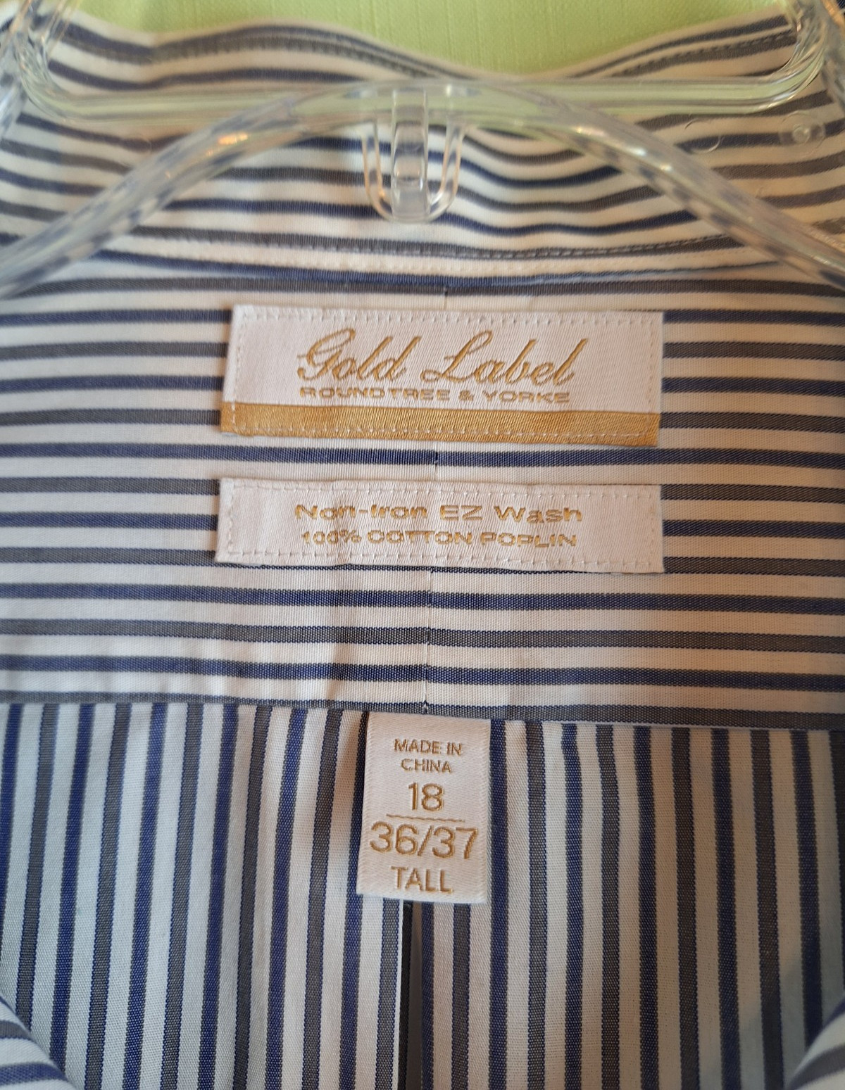 как выглядит 1140 Roundtree Yorke Gold Label Non Iron EZ Wash Striped Cotton Dress Shirt фото