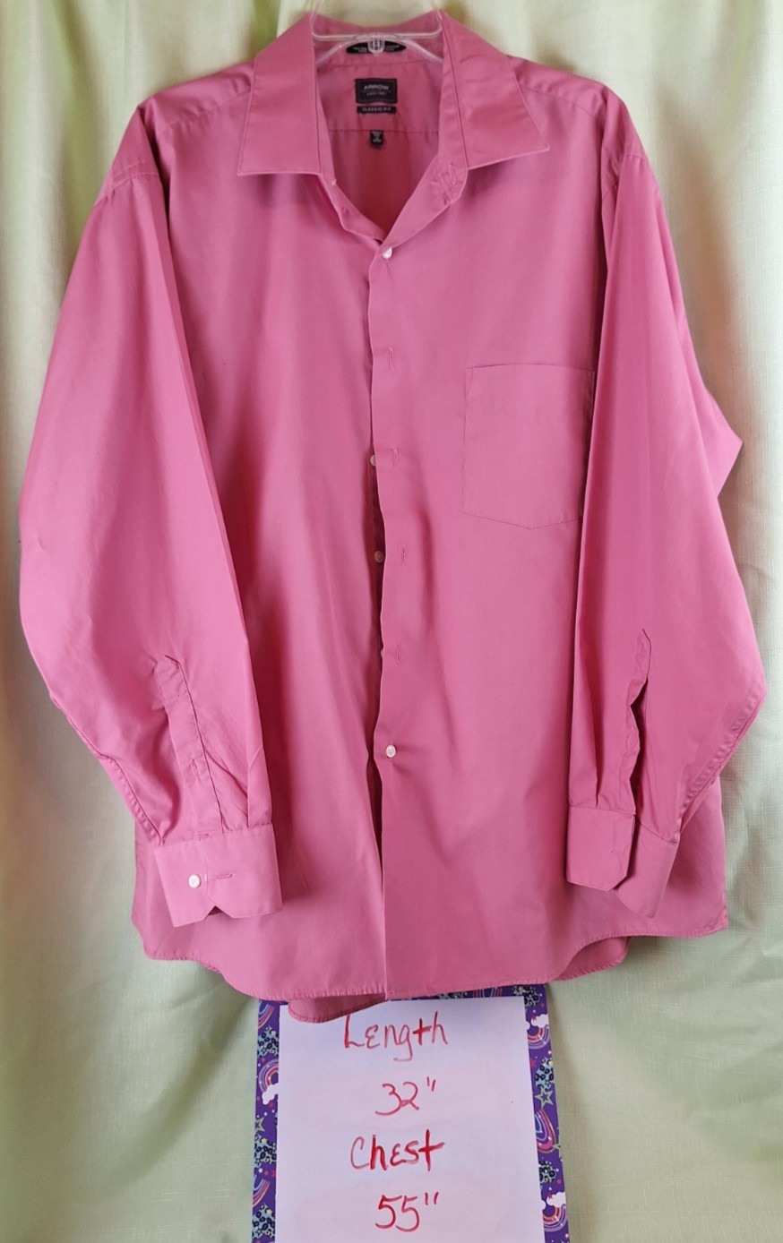 1142 Arrow Fitted Wrinkle Free Mens Melon Pink Casual Dress Shirt Size 18 34/35