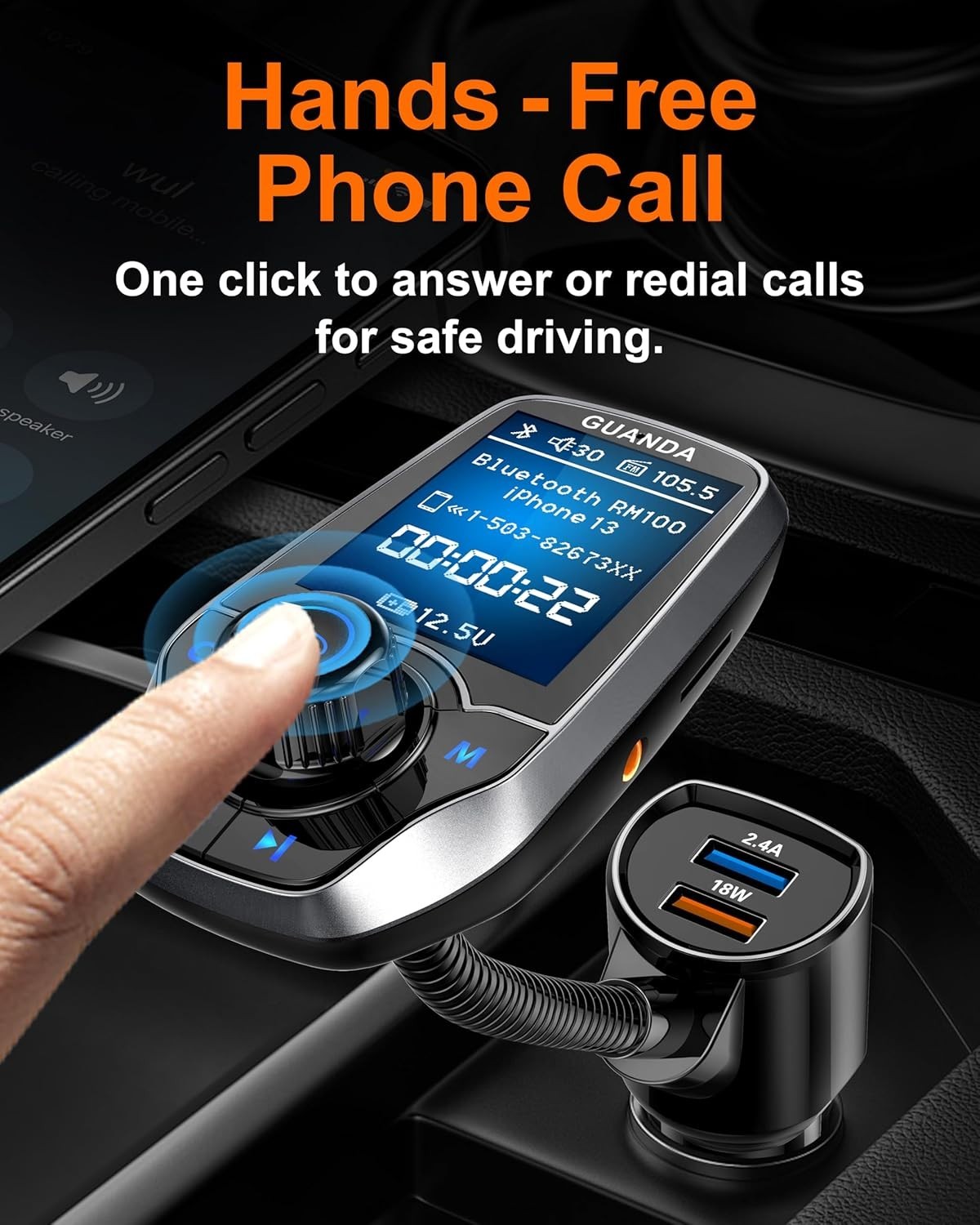 как выглядит Upgraded Bluetooth FM Transmitter for Car, Wireless Radio Adapter Kit W 1.8" ... фото
