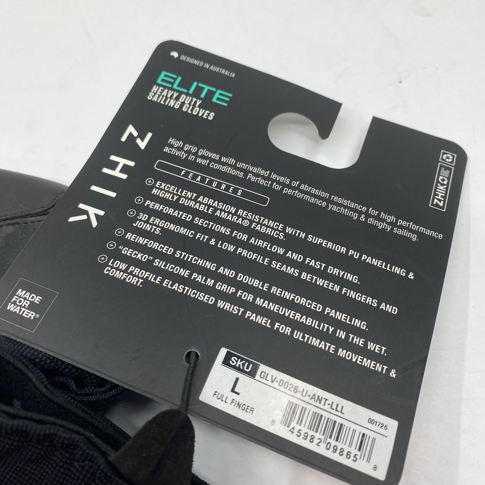 Zhik ELITE Sailing Gloves Adult Large Black Full Finger Heavy Duty NEW 75
