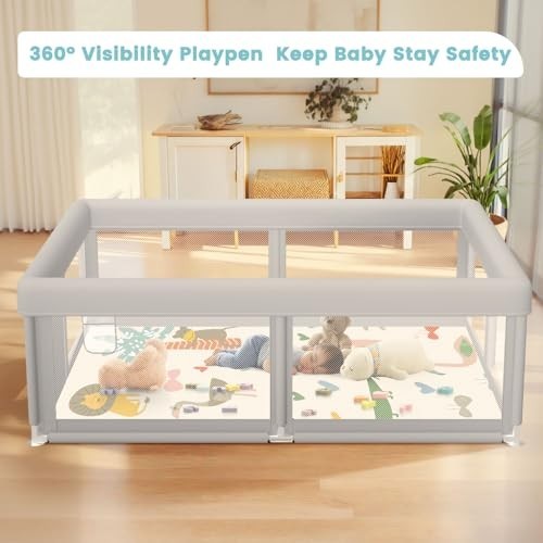 Sturdy Baby Playpen with Mat 50x50 Inch, Safety Gate for Toddlers, Indoor/Outdoo