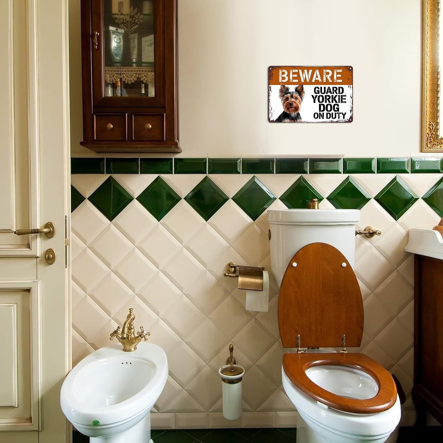• Beware Guard Yorkie Dog Tin Metal Signs Home D cor, Vintage Yorkshire Terrier Pr