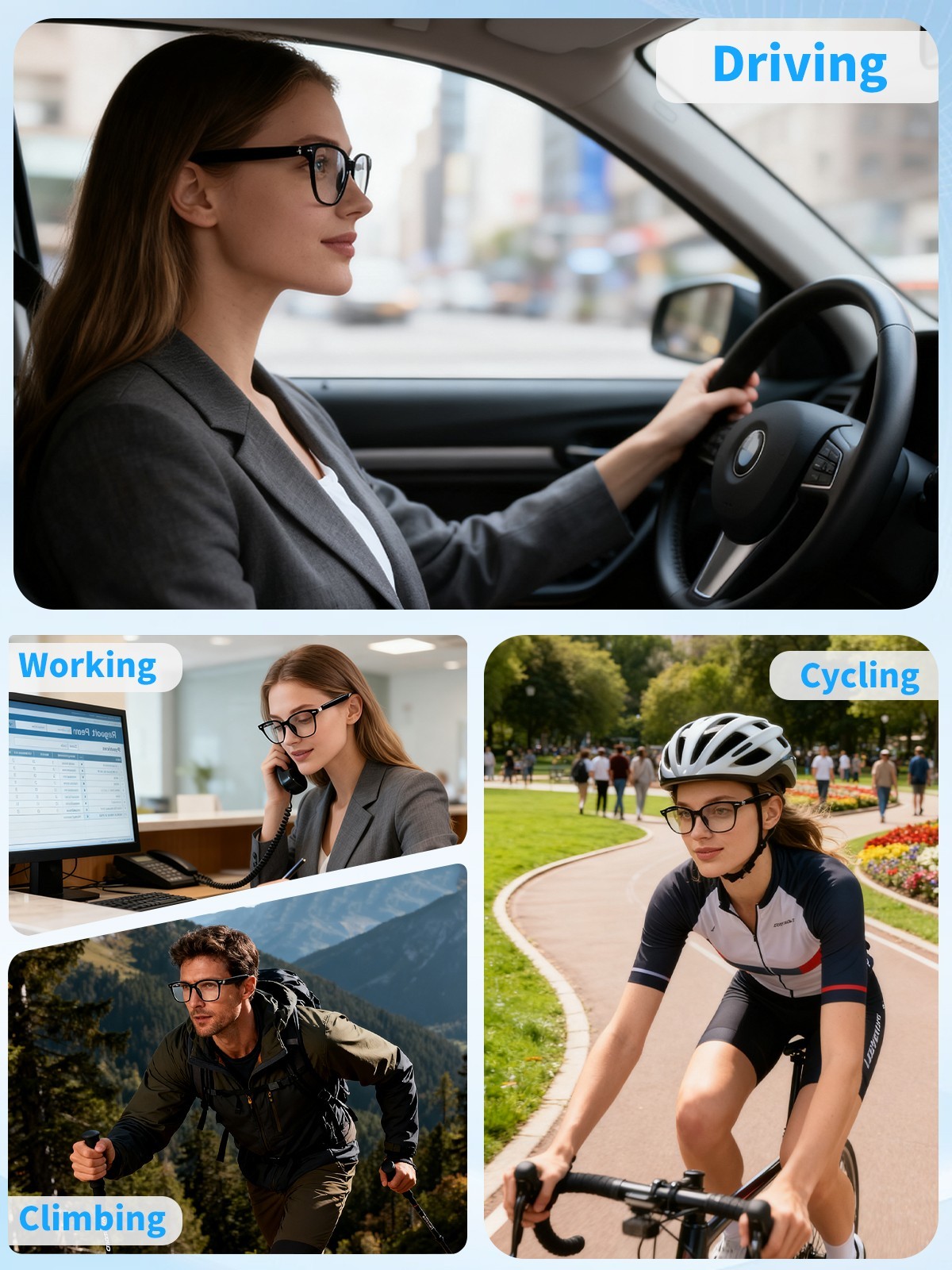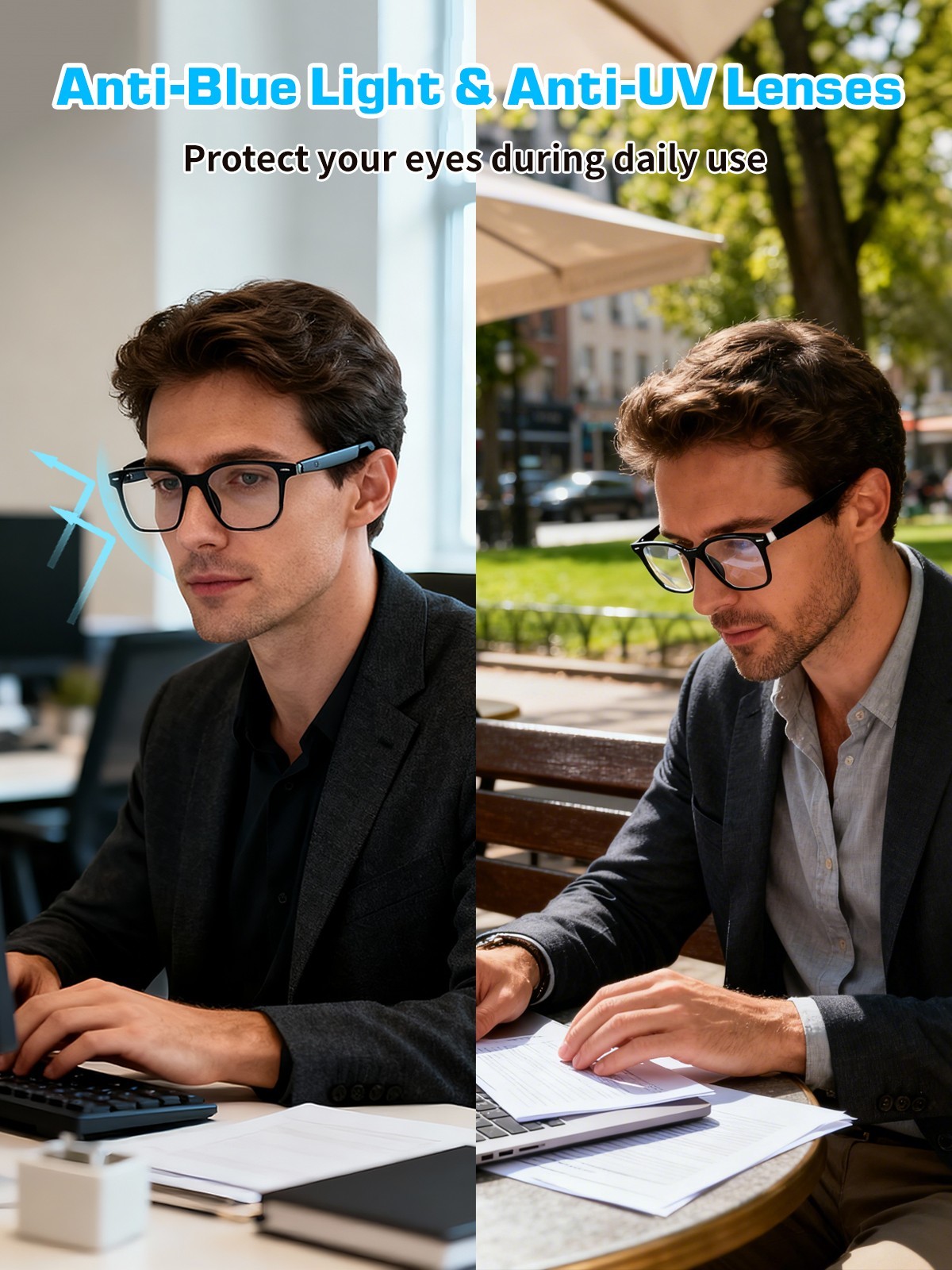AI Smart Glasses Bluetooth Glasses with 144 Translation for Men Woman Travel