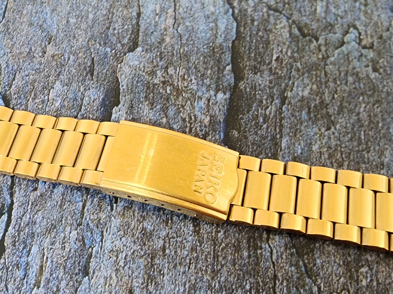 VINTAGE SEIKO BRACELET 18MM Straight End RARE president Style Gold Color Steel.
