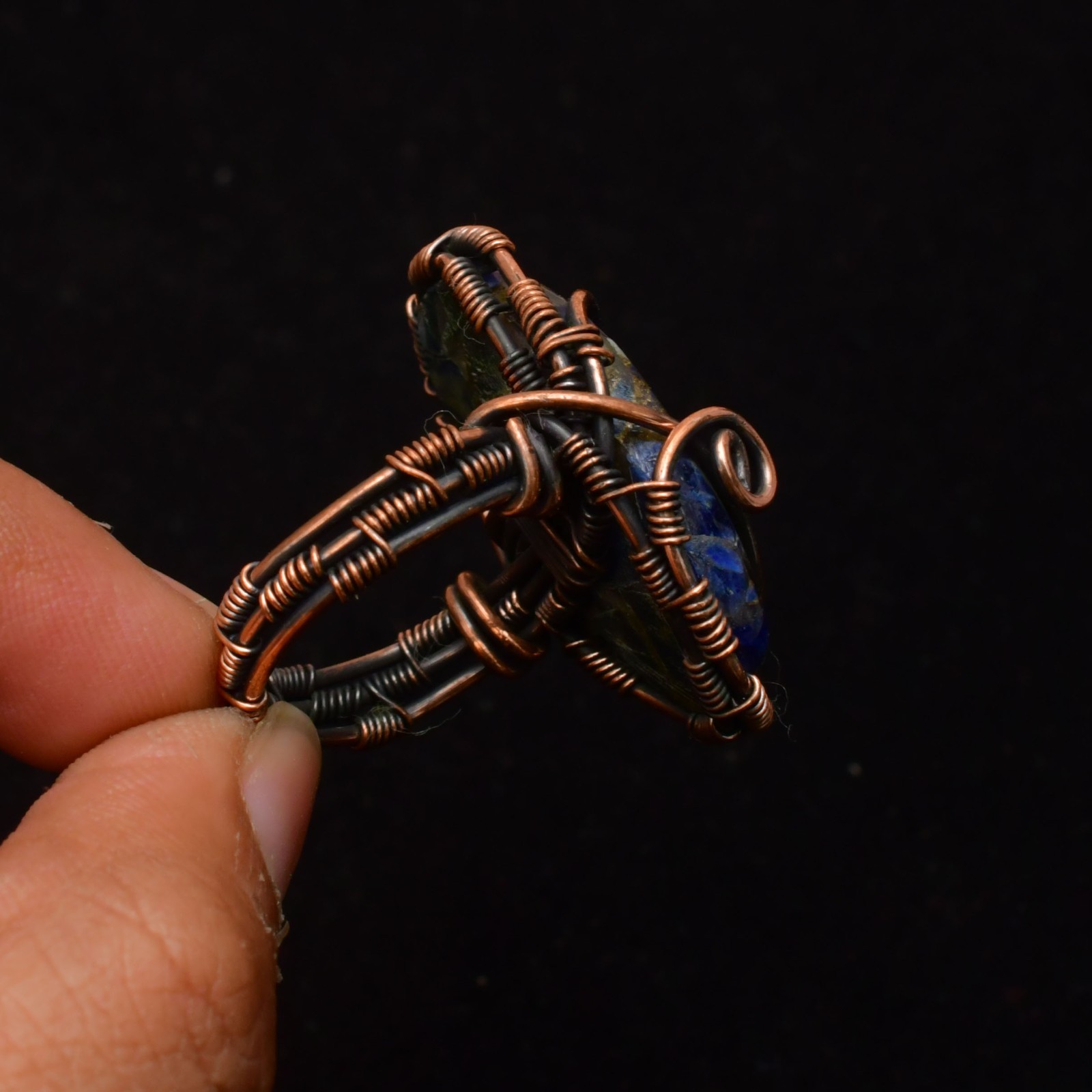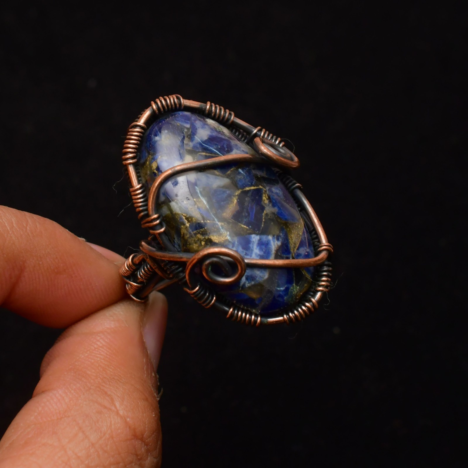 как выглядит Copper Sodalite Gemstone Copper Wire Wrapped Handmade Jewelry Ring Size 8 фото