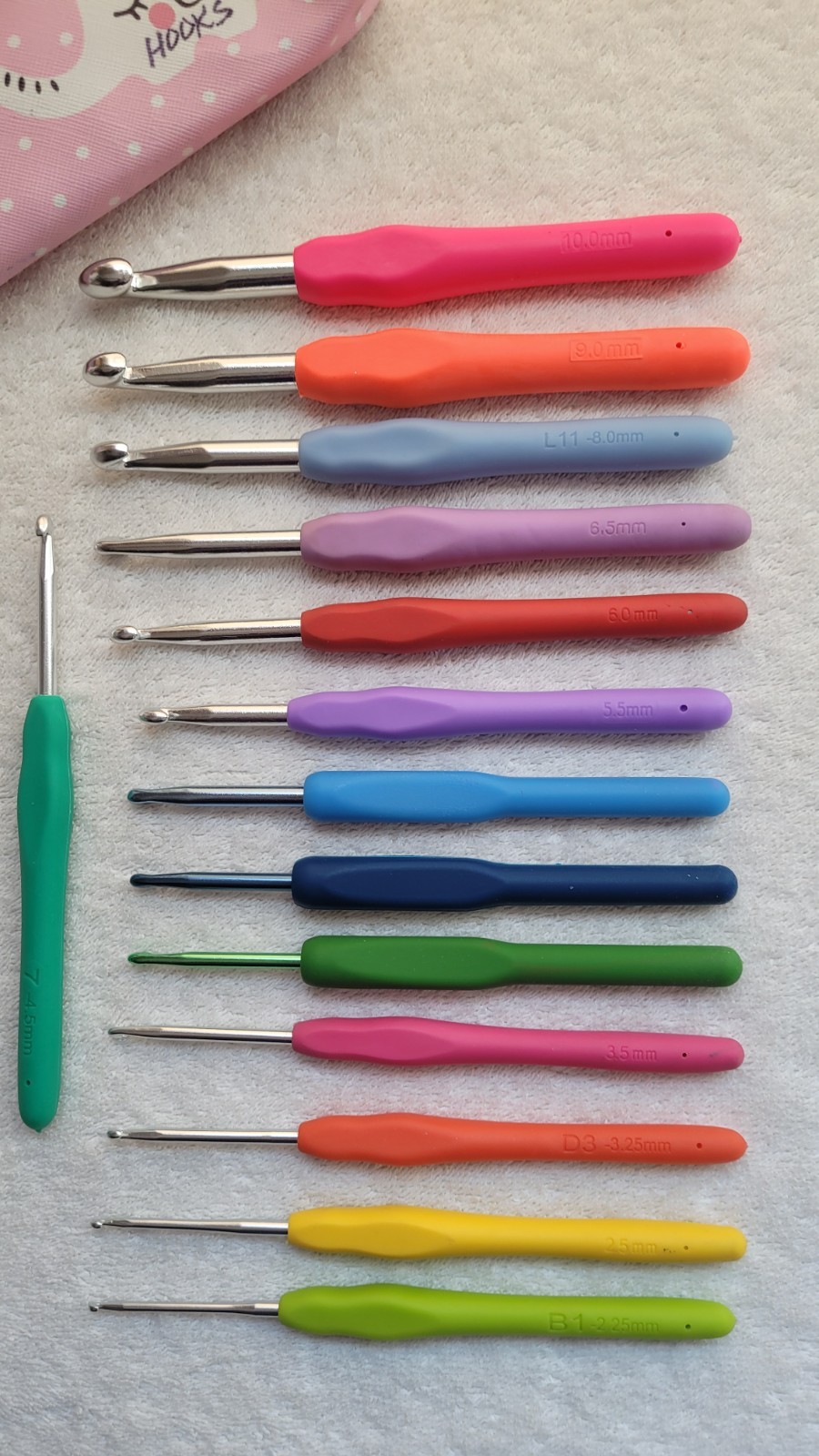 как выглядит Preowned Set of 14 Ergonomic Crochet Hooks Multi Colors with case sizes B-N 7 фото