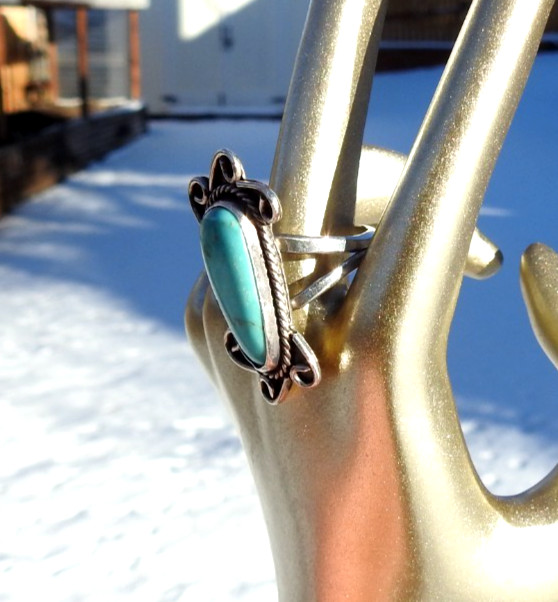 Native American Navajo Turquoise .925 Sterling Silver Size 8 1/2 Ring 7.4 Grams
