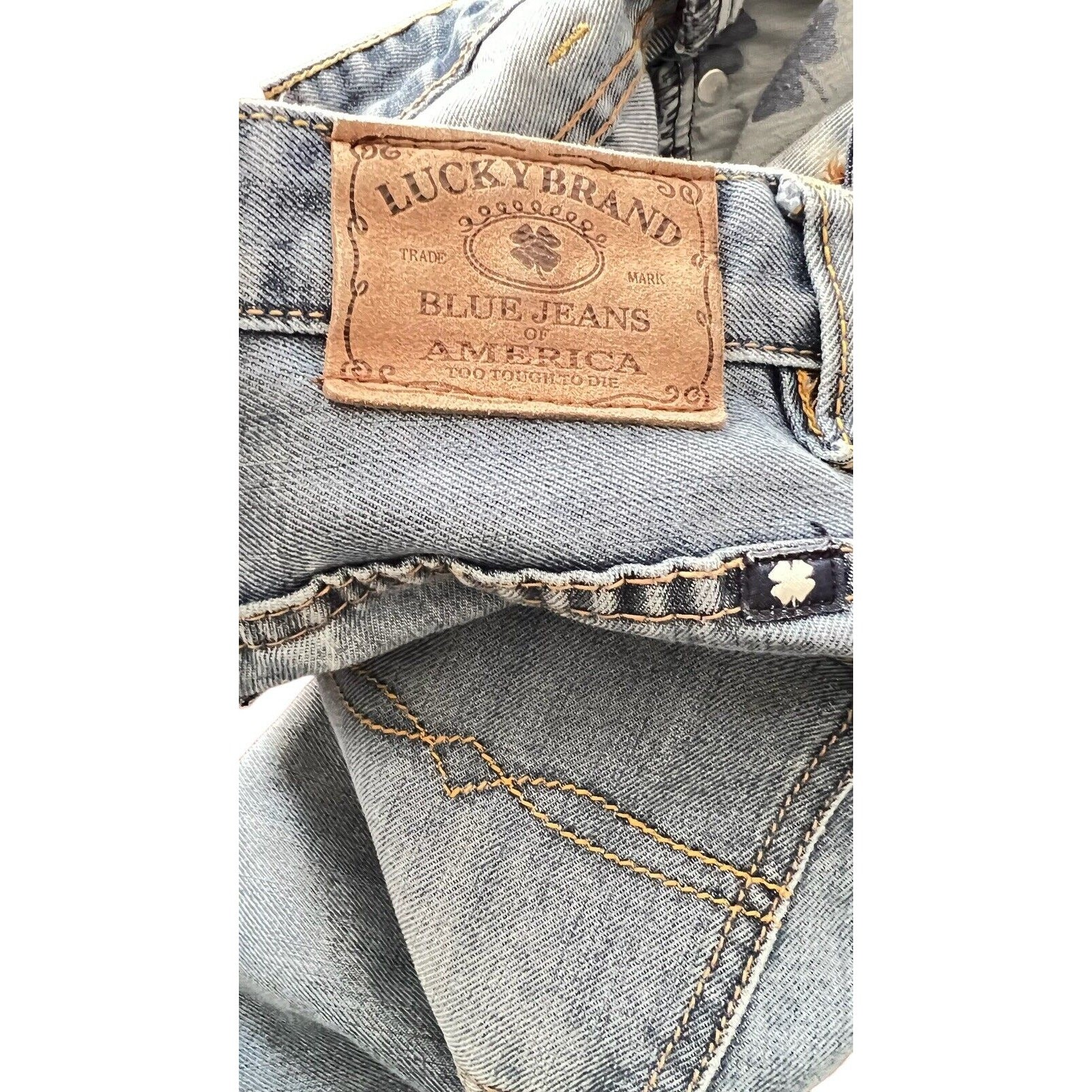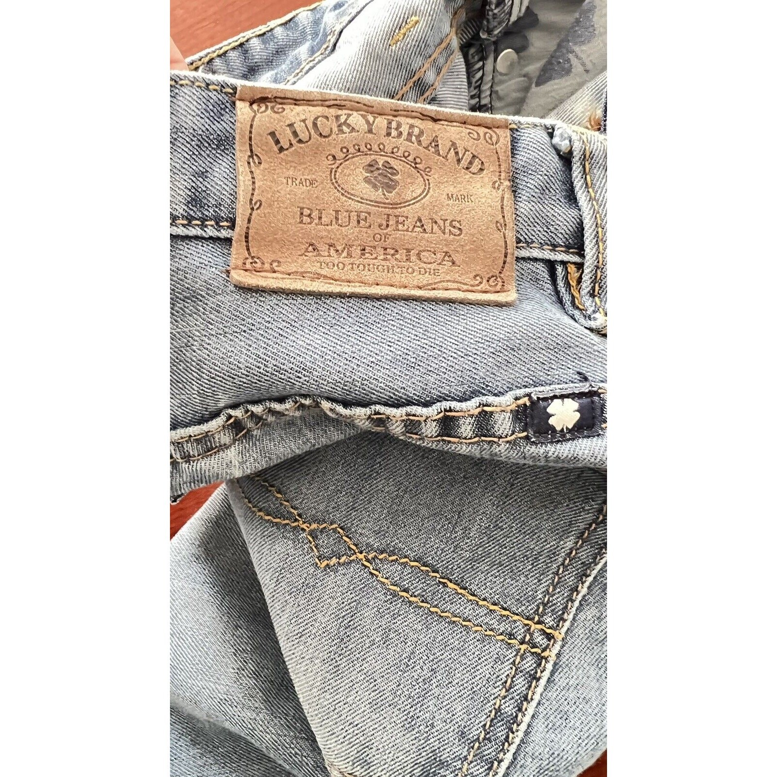 как выглядит Lucky Brand Jeans Boys Billy Straight Blue Denim Size 18 Distressed Acid Washed фото