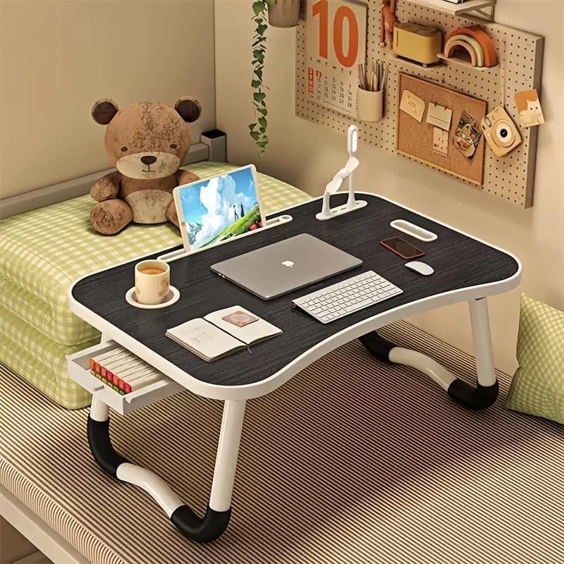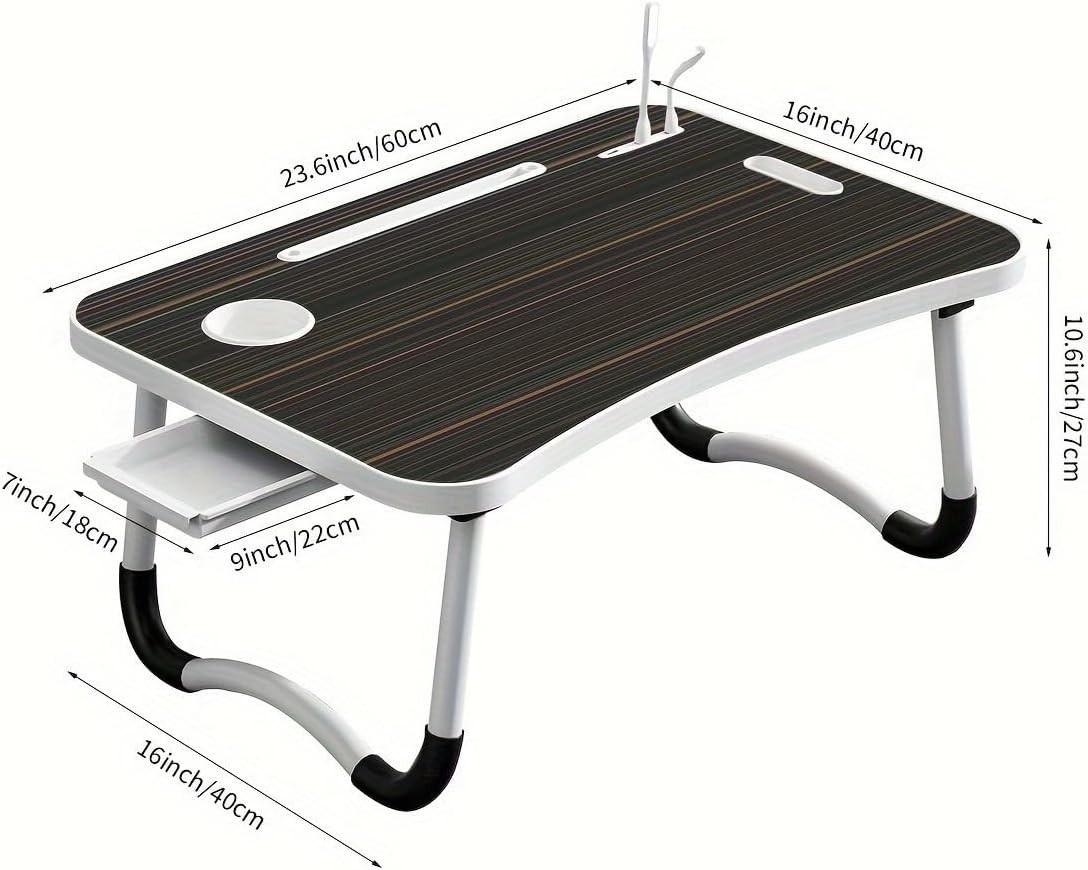 Portable Foldable Laptop Bed Table Desk w/ USB Ports, Drawer Cup Holder