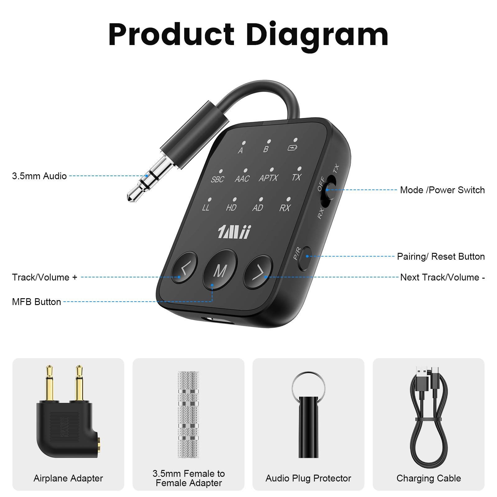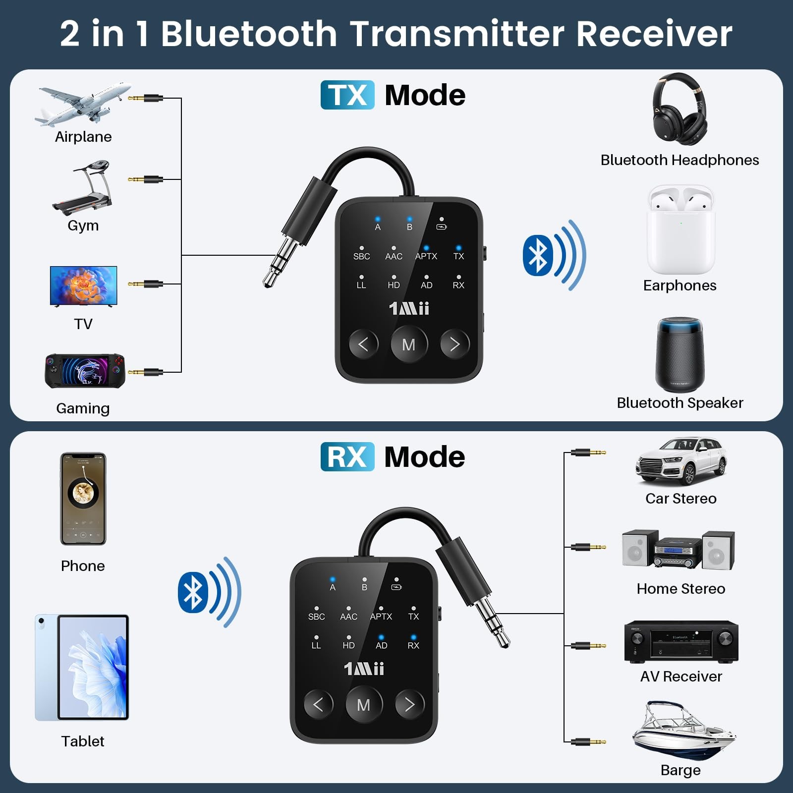 Bluetooth 5.3 Transmitter Receiver, Dual Link for 2 Headphones, aptX Adaptive...