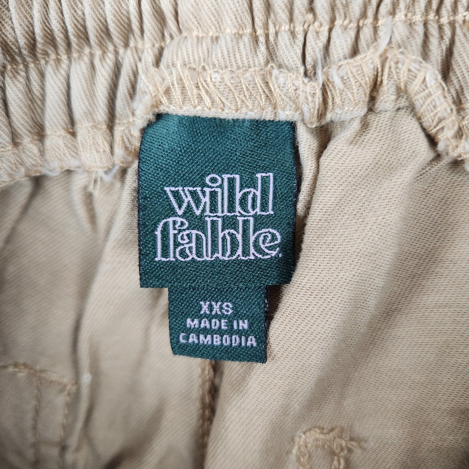 как выглядит Wild Fable Tan Khaki Wide Leg Cargo Pants XXS Elastic Waist Drawstring Utility фото