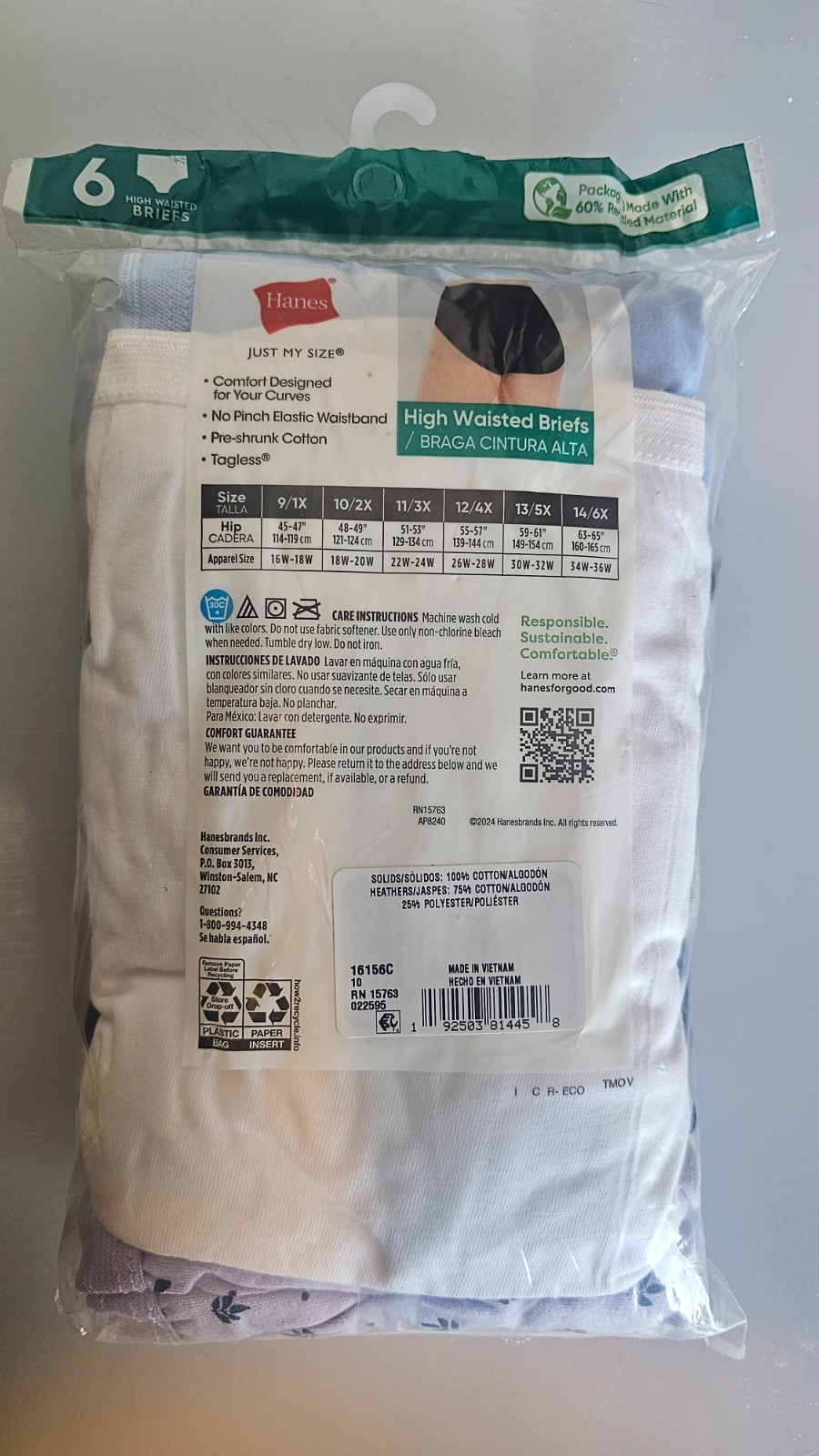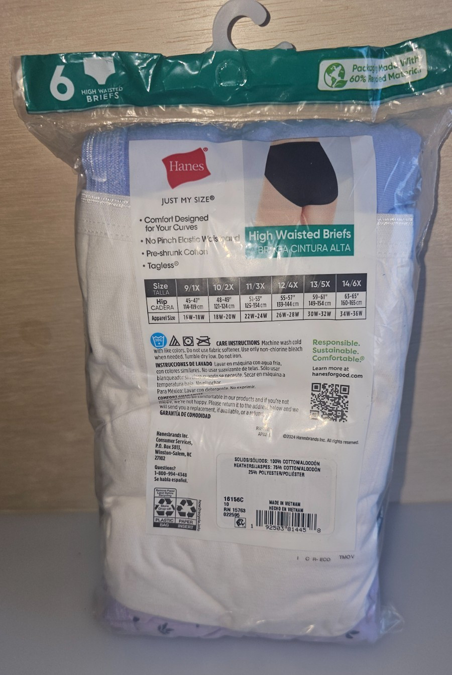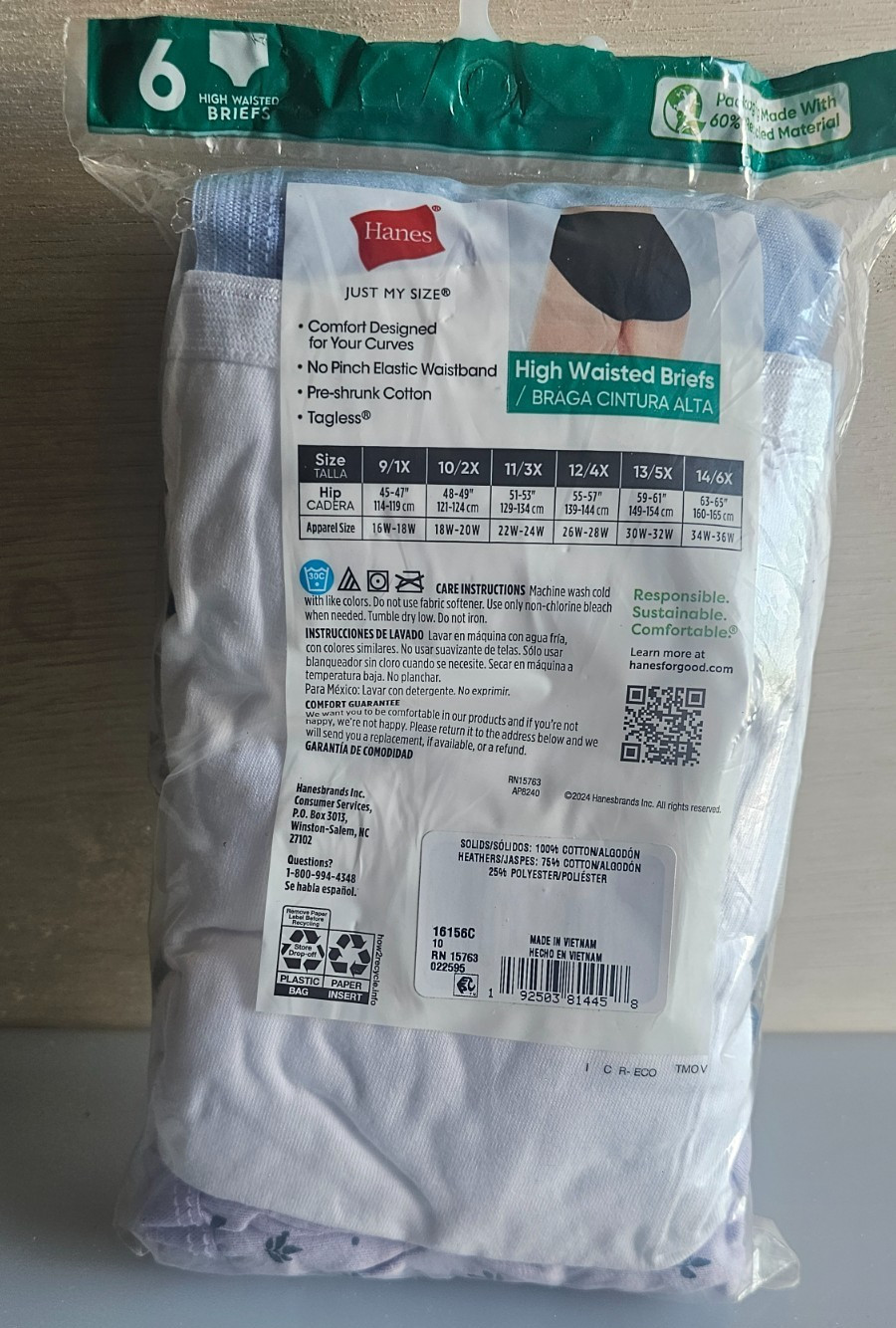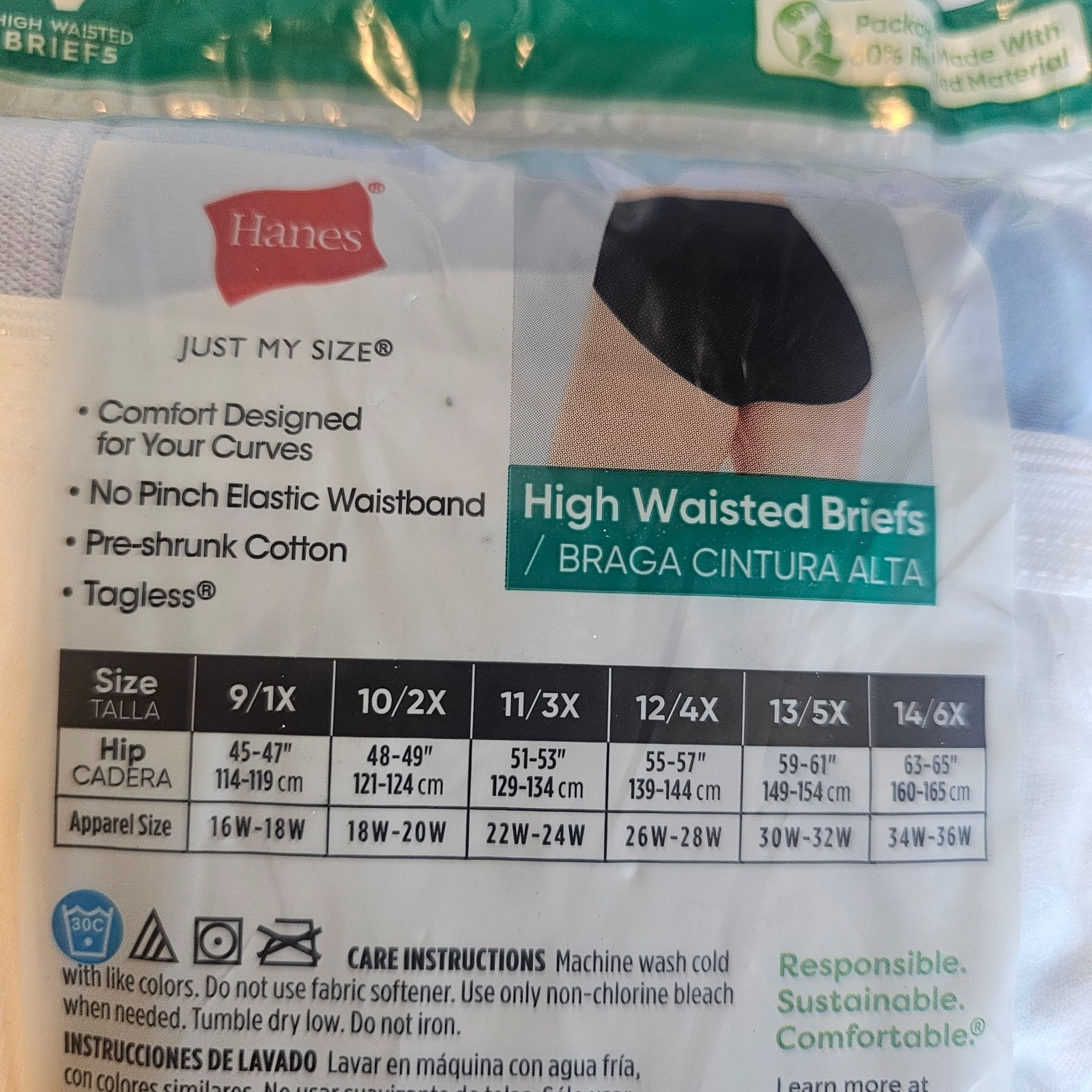 Hanes Underwear Womens 10 2X High Waisted Briefs Breathable Just My Size 6 Pairs