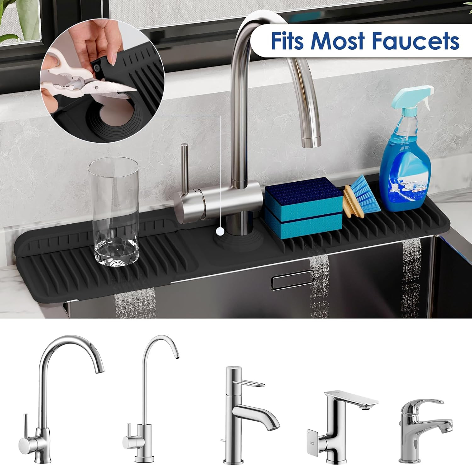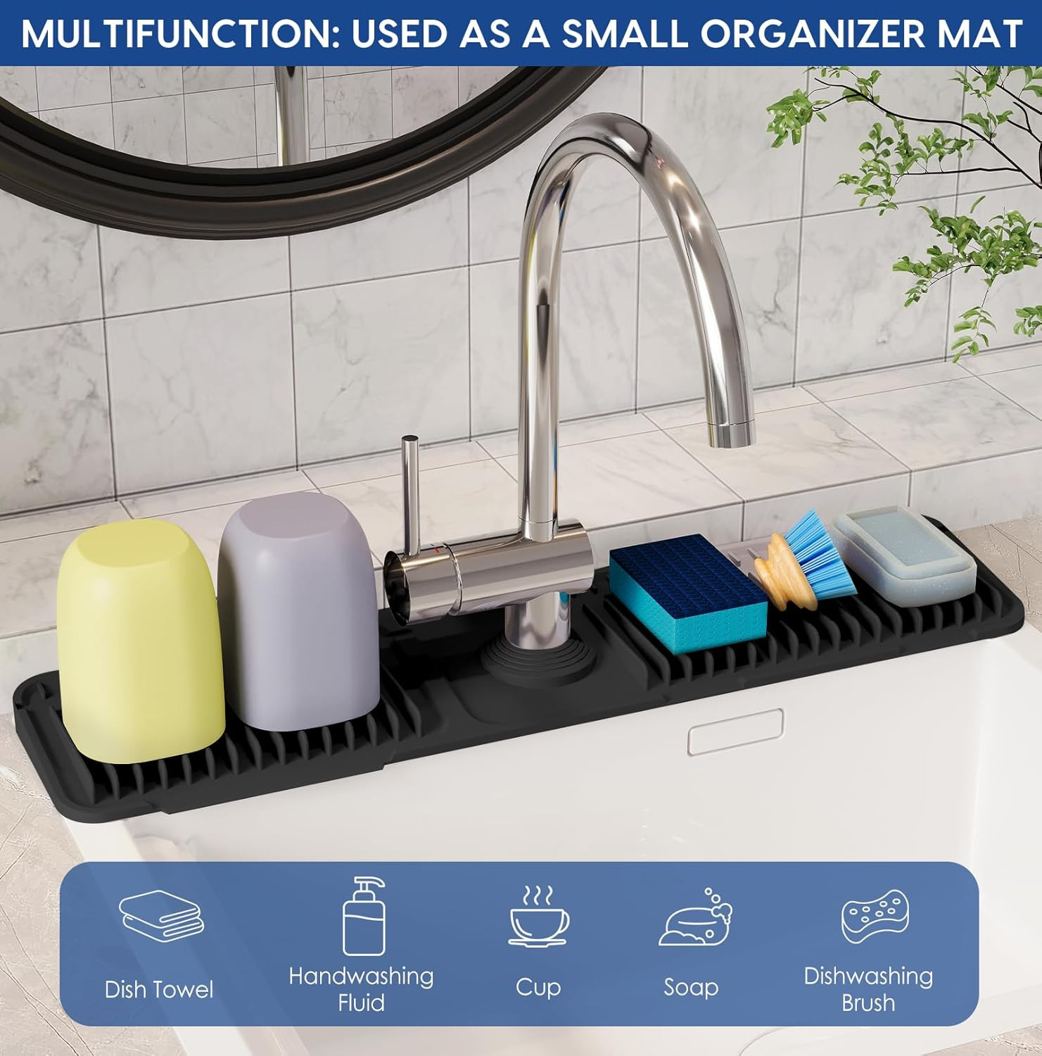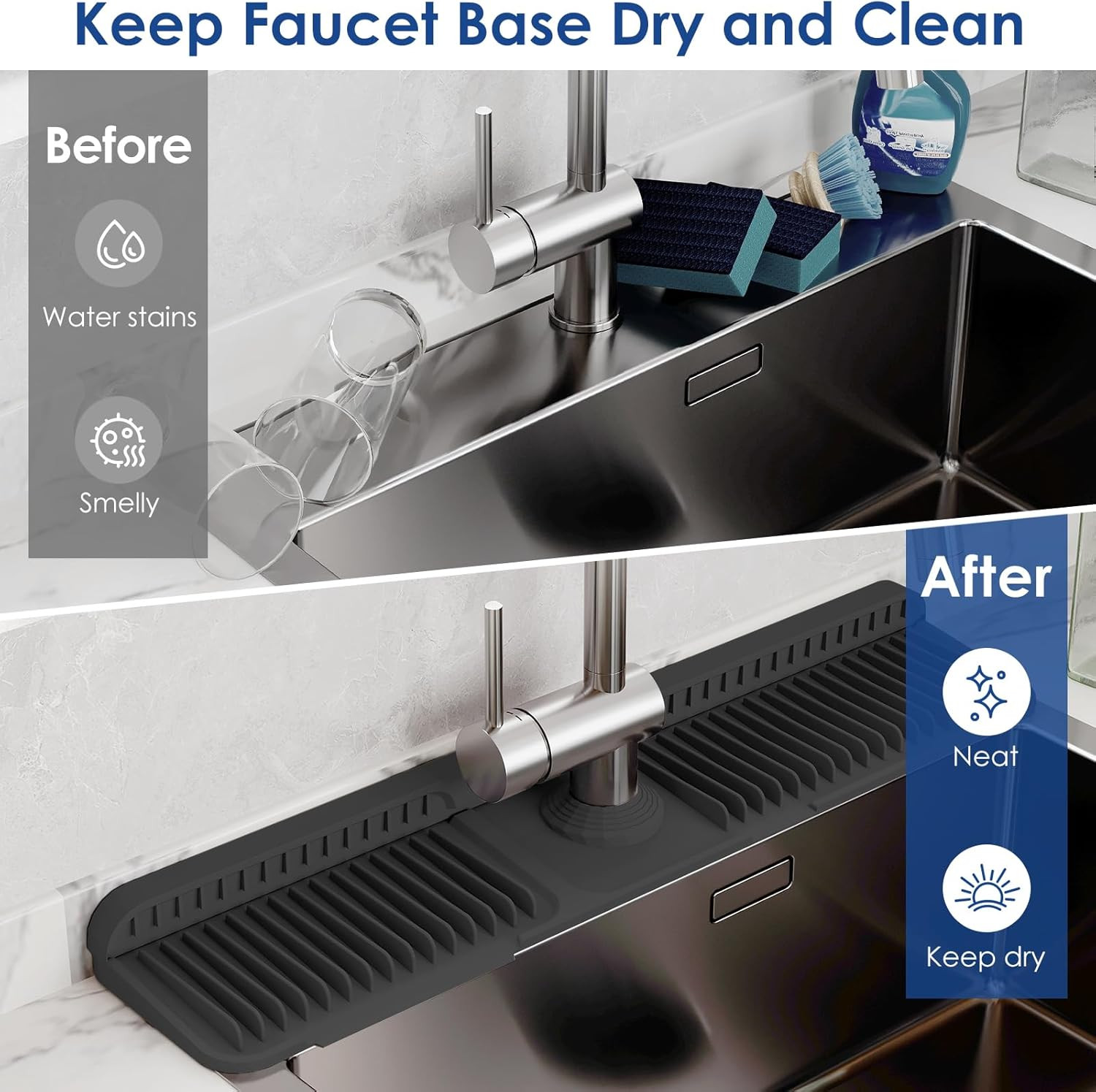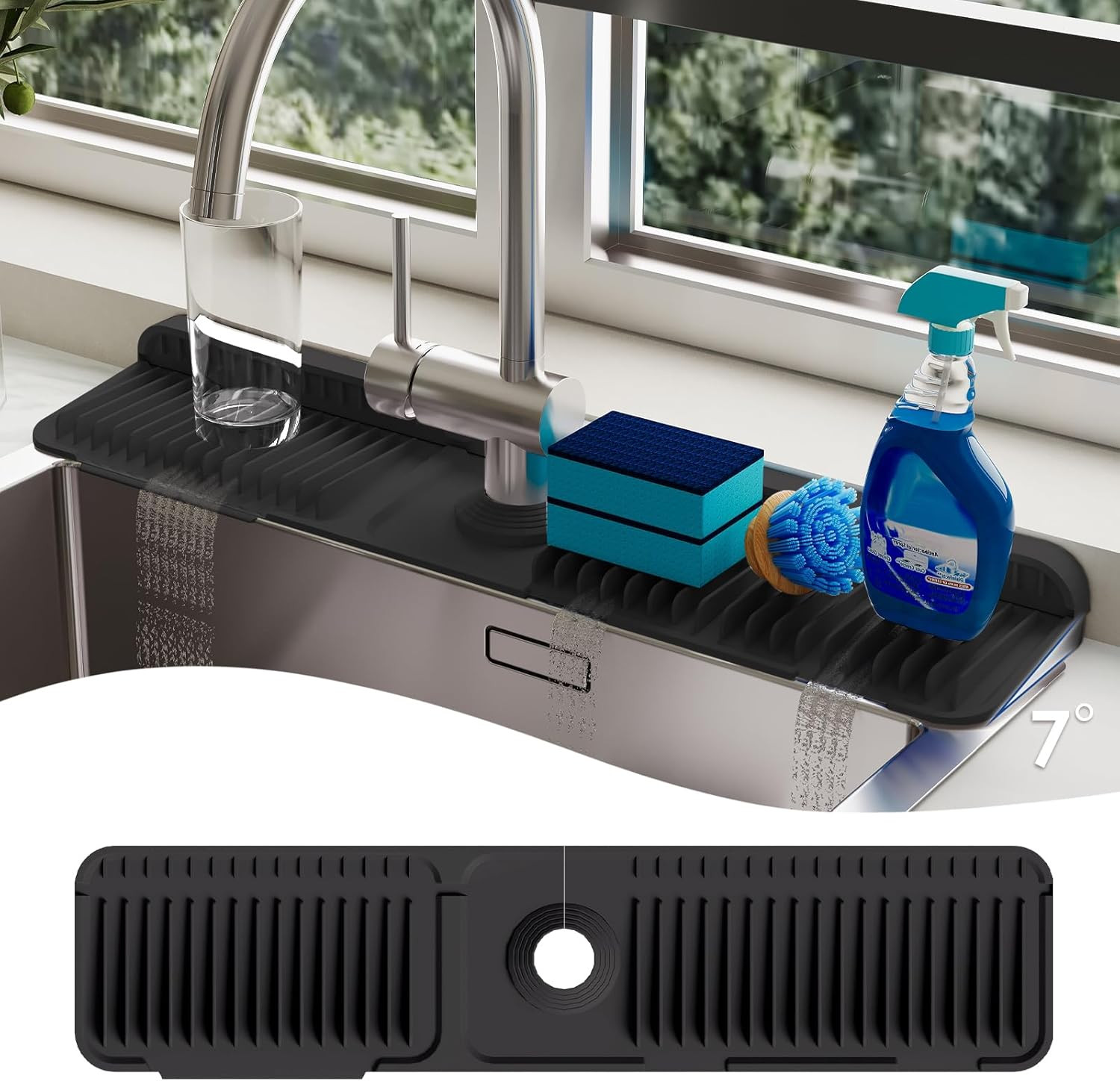 24 Inch Silicone Faucet Mat for Kitchen Sink Splash Guard - 7 Slope Upgraded Wa