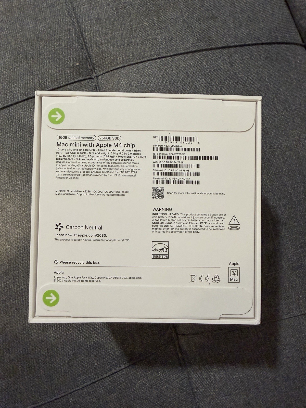 Apple Mac mini Desktop M4 chip 16GB Memory 256GB SSD Silver MU9D3LL/A 2024