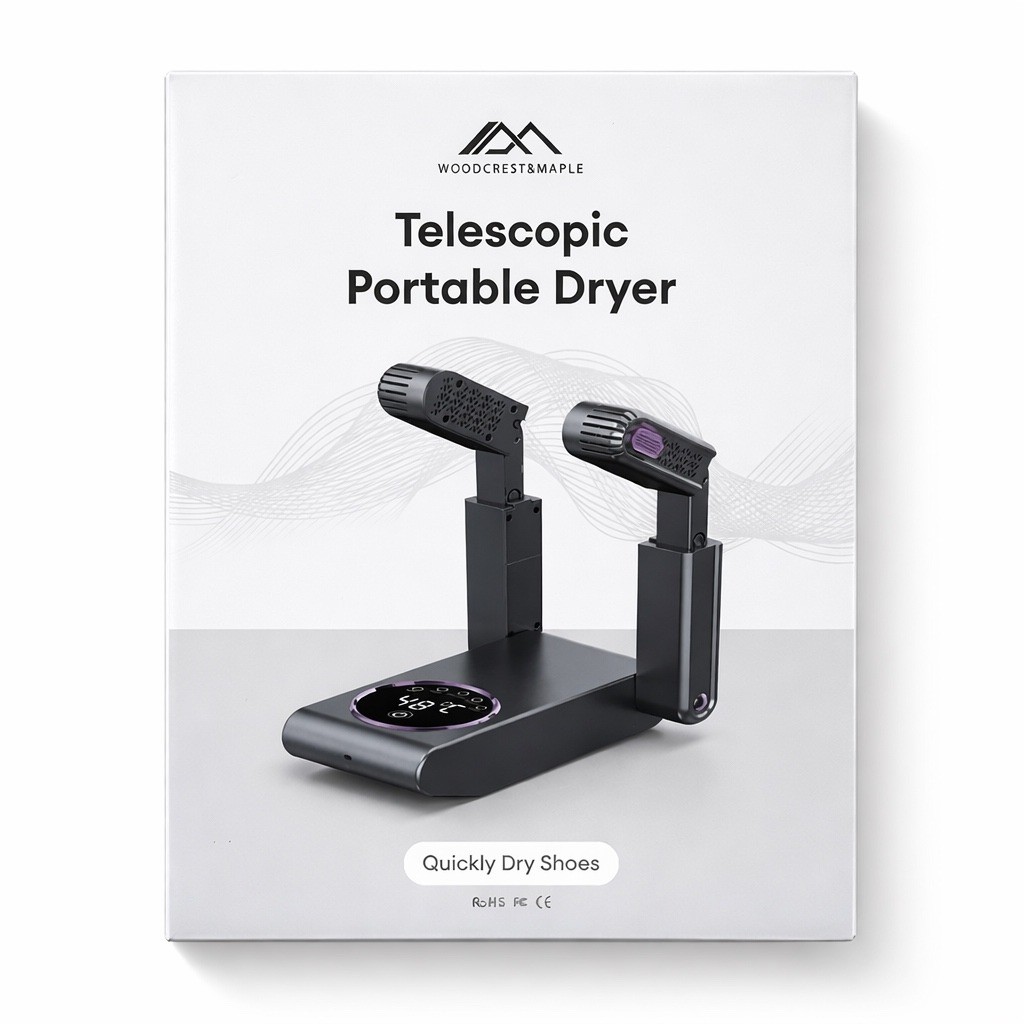 Woodcrest Maple Telescopic Portable Shoe Dryer Black 25W 110V Foldable Timer